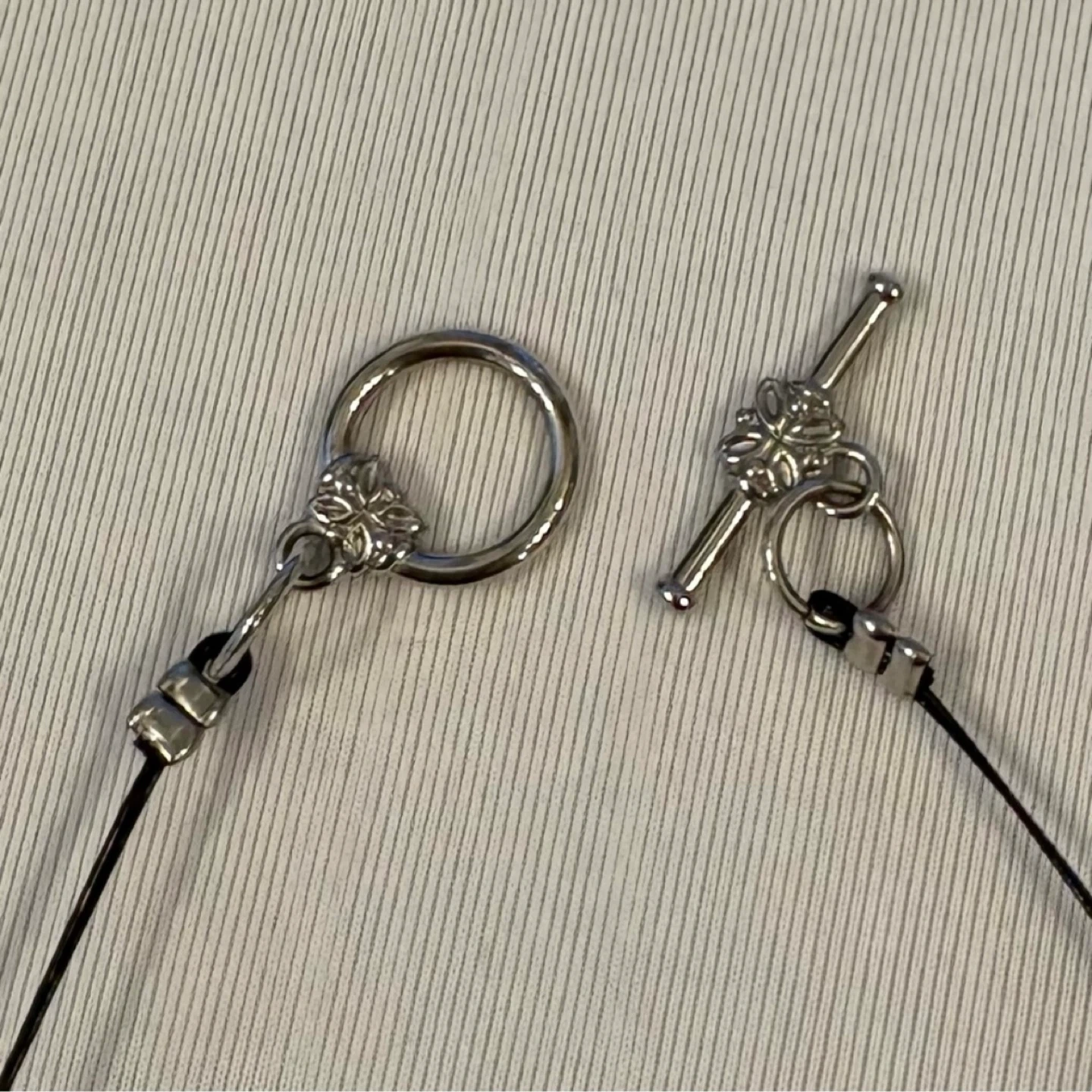 Abstract Mod Spike Bead Collar Silver Cord Necklace Toggle