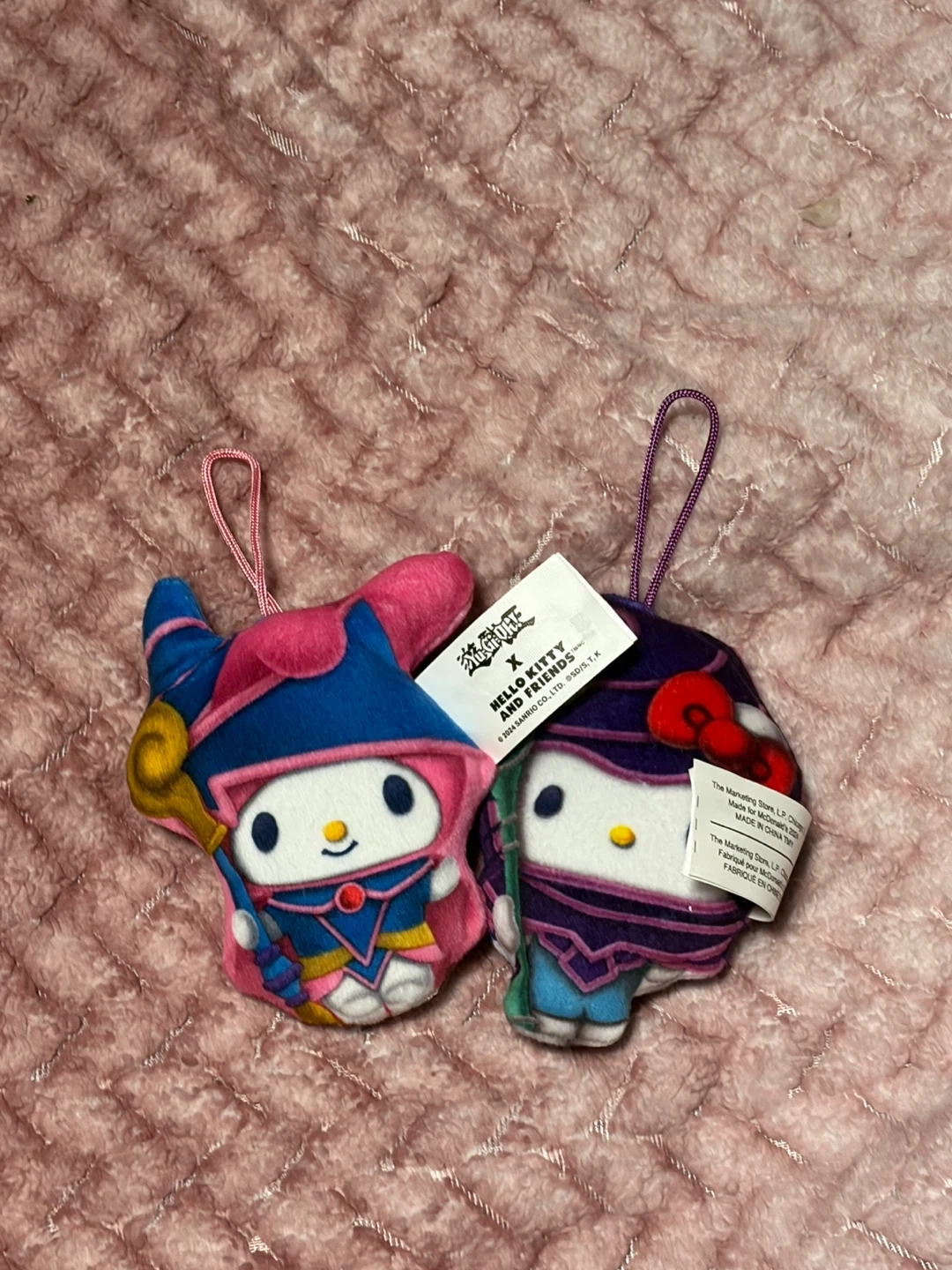 This is a set of two Hello Kitty and Friends plush toys. One is dressed as a wizard and the other as a mummy. They're made for McDonald's. Soft plush material.
