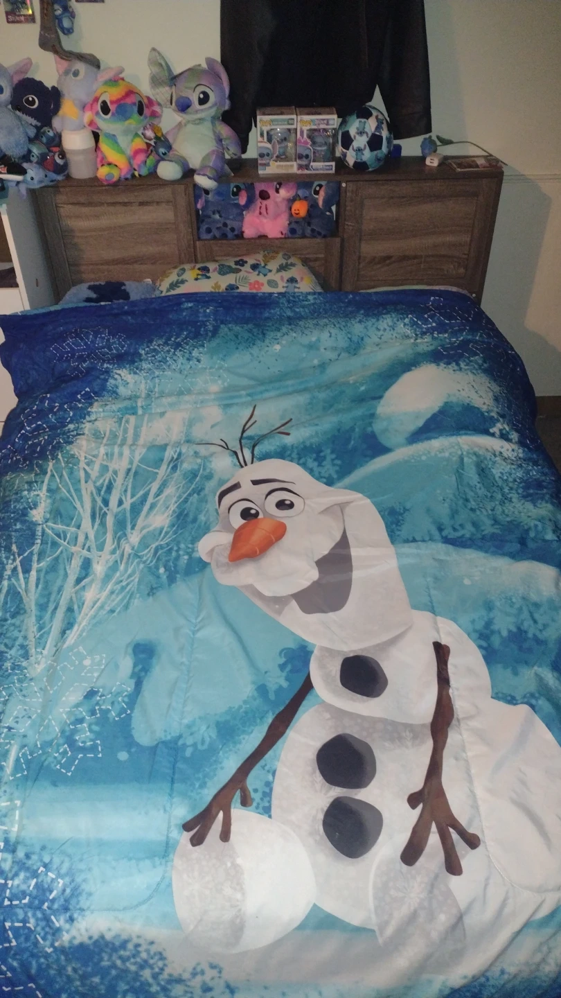 This twin duvet cover features Olaf from Disney's Frozen. It's made of soft material and is perfect for any young fan's bedroom. Adds a fun touch to bedtime!