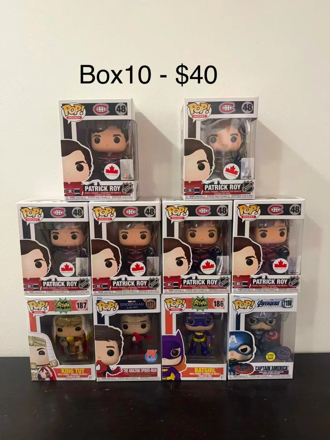 Collection of various Funko Pop figures including characters from Marvel, Star Wars, Disney, and more. Figures are in their original boxes, ready for display. Perfect for collectors of pop culture memorabilia!