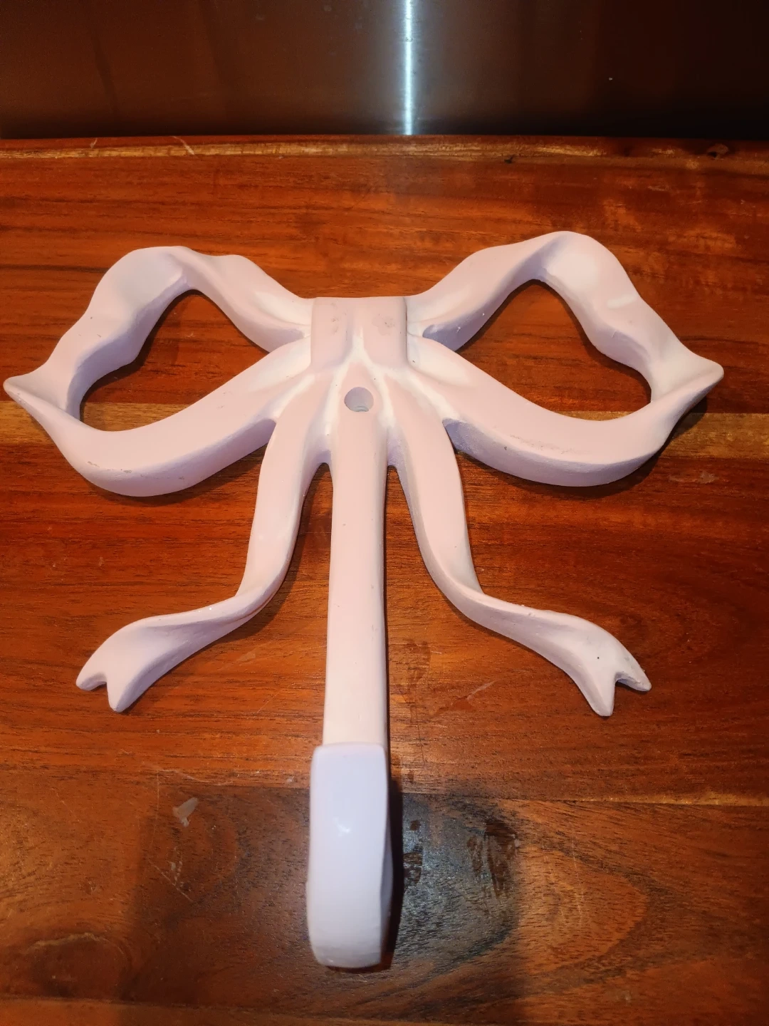 * Pink wall hook shaped like a bow