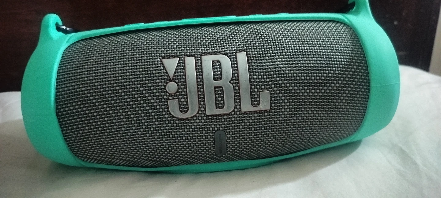 Selling a JBL 5 portable Bluetooth speaker,with a turquoise strap. It's in great shape and ready to bring the tunes! Perfect for taking your music on the go, whether you're at the park or just hanging out at home