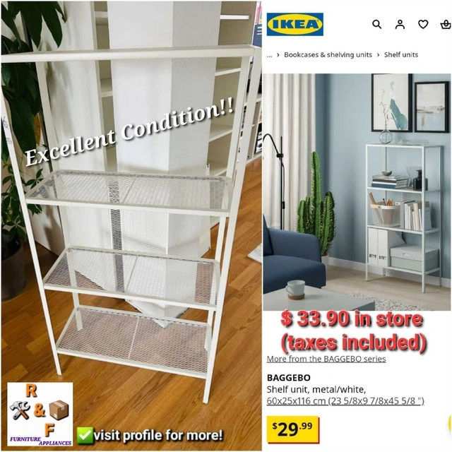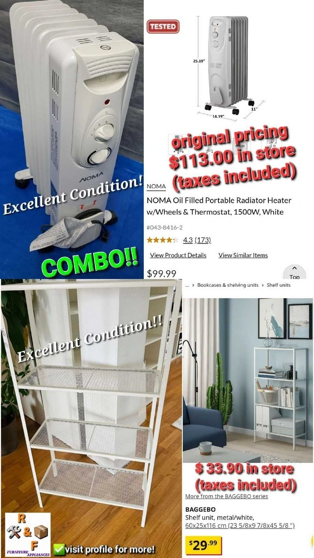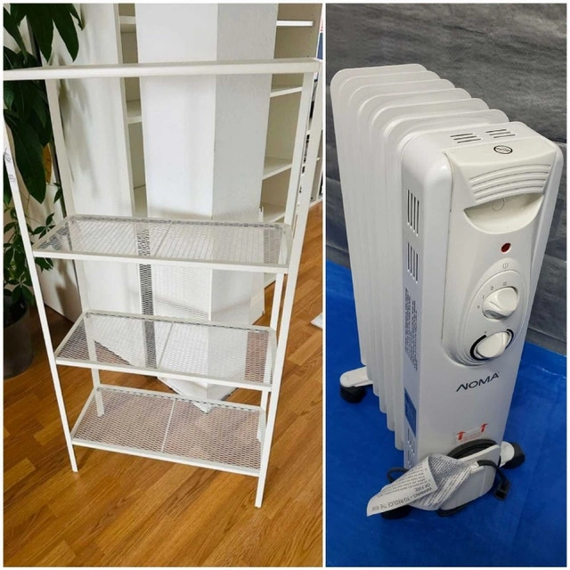✴️ I'm asking $70 for this bundle, a steal considering the heater alone retails for $113 plus taxes and the shelf for $34 plus taxes at Canadian Tire and IKEA respectively. Both items are in excellent working order and ready to go!