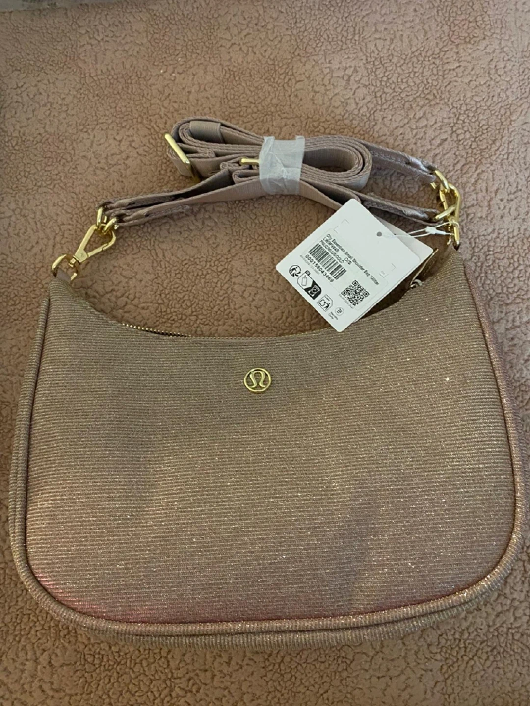 Lululemon City Essentials Glitter Bag 3L NWT Pink Champagne/Gol