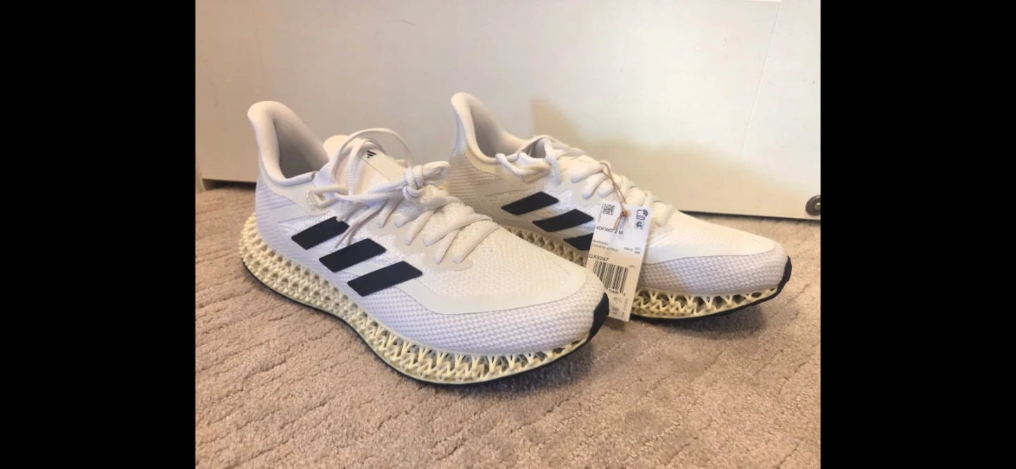 These Adidas 4DFWD 2 running shoes are in a men's size 11 and are white. They feature a Continental rubber outsole for excellent grip. Made in Vietnam. Comes with original box.
