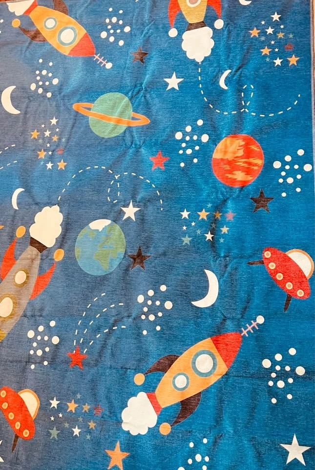 Beautiful space-themed bright and fun rectangular kids’ rug in excellent condition. Perfect size for a play area, reading corner, or beside a bed.