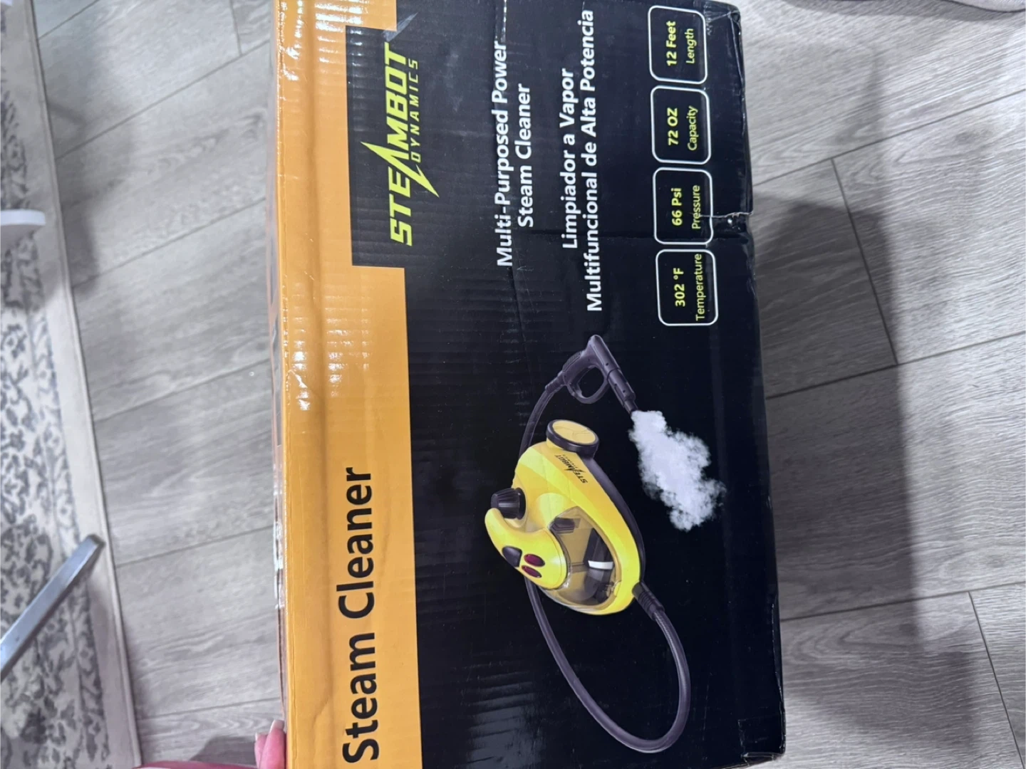 Selling a brand new Steambot Dynamics Multi-Purpose Power Steam Cleaner! It has a 72 OZ capacity and a 12 feet length. It can reach a temperature of 302°F with 66 PSI pressure. Box included