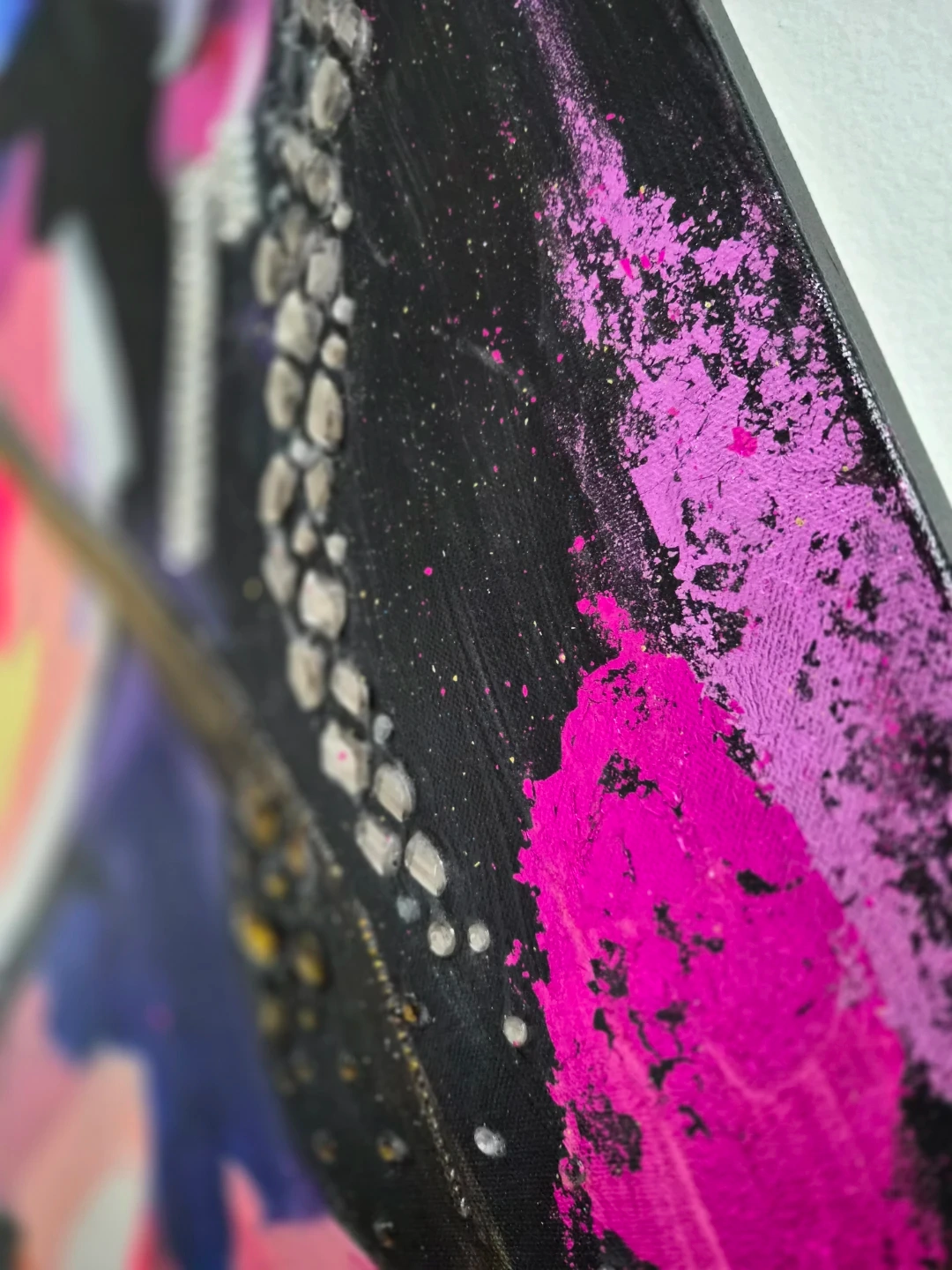 Medium; Acrylic, gold flakes, and gemstones