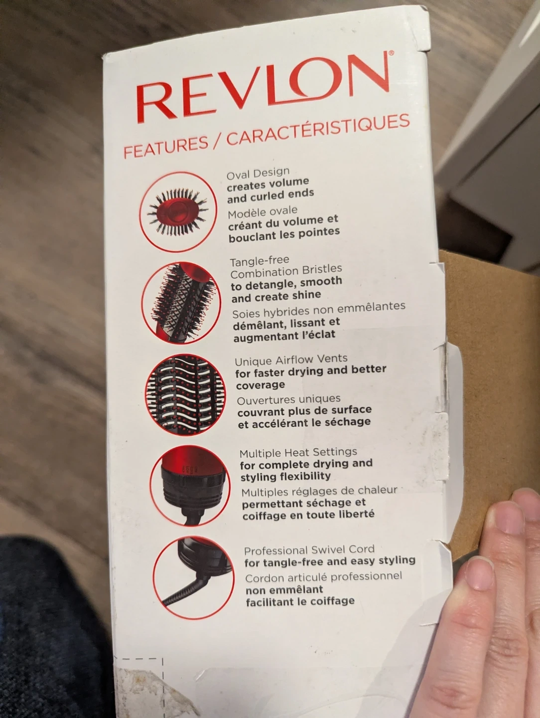 This Revlon hair dryer and volumizer features an oval design for creating volume and curled ends. It has tangle-free bristles to detangle, smooth, and shine hair. Multiple heat settings offer complete drying and styling flexibility.