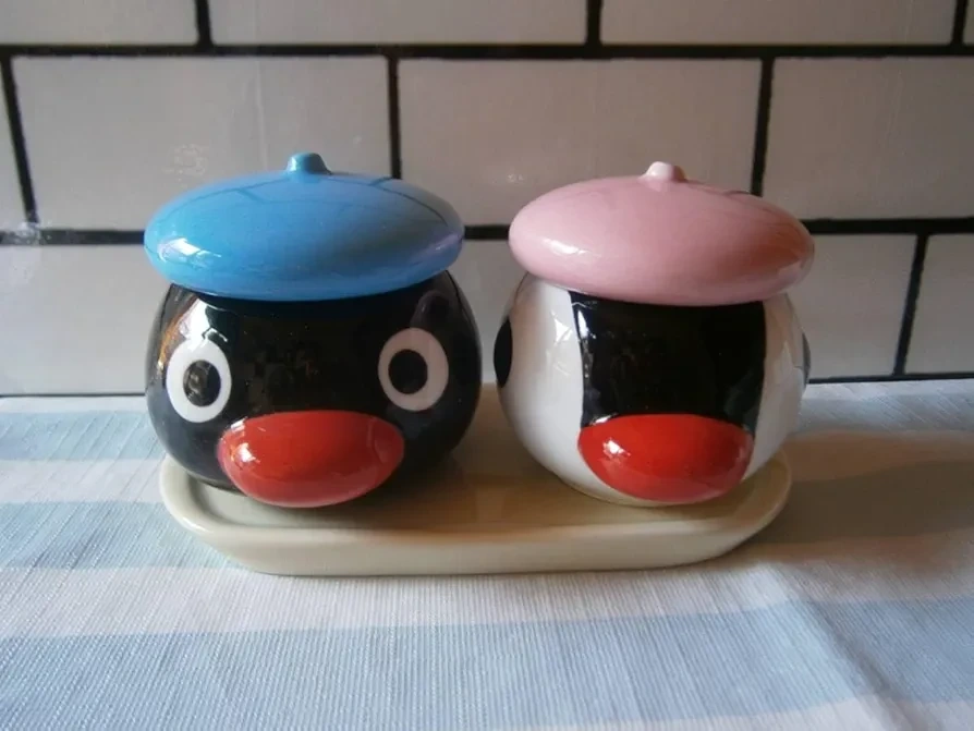 Pingu Pinga ceramic jars with lids and tray