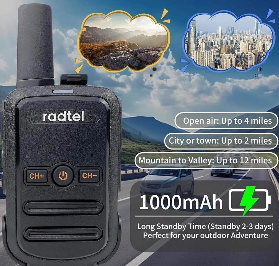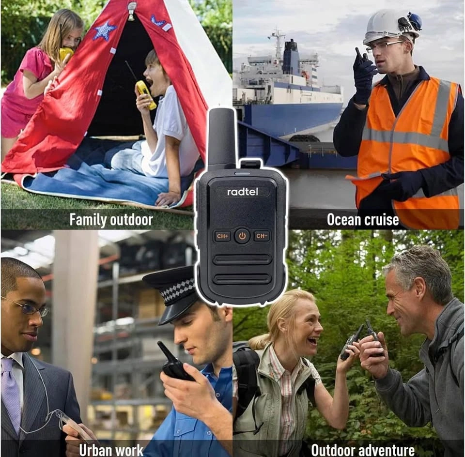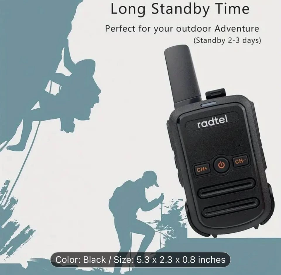 BNIB rechargable Radtel RT12 Walkie Talkies pair. High quality. Stay connected anywhere. Clear sound. Powerful, long distance coverage , compact and lightweight. Very easy to use. Great for outdoors like camping, hiking, fishing. Communicate easily save money when traveling. Indoors like under buildings where there are no cell coverage. Don’t need to pay subscription. For families, for work or for fun any where anytime. Life saver for emergencies