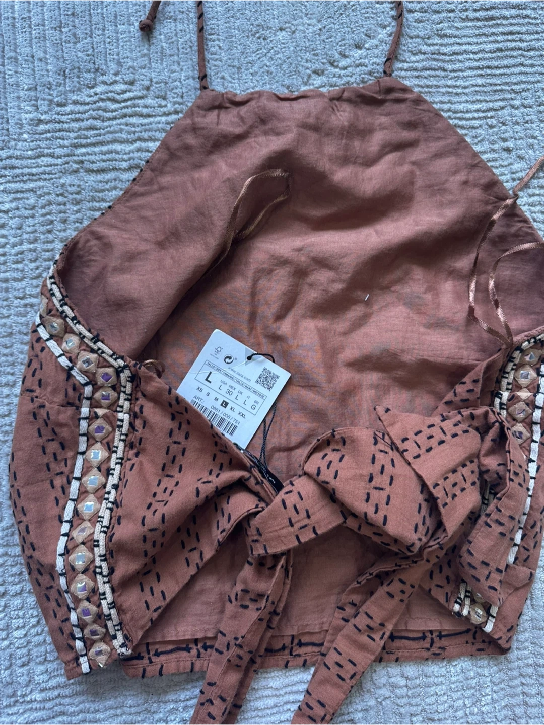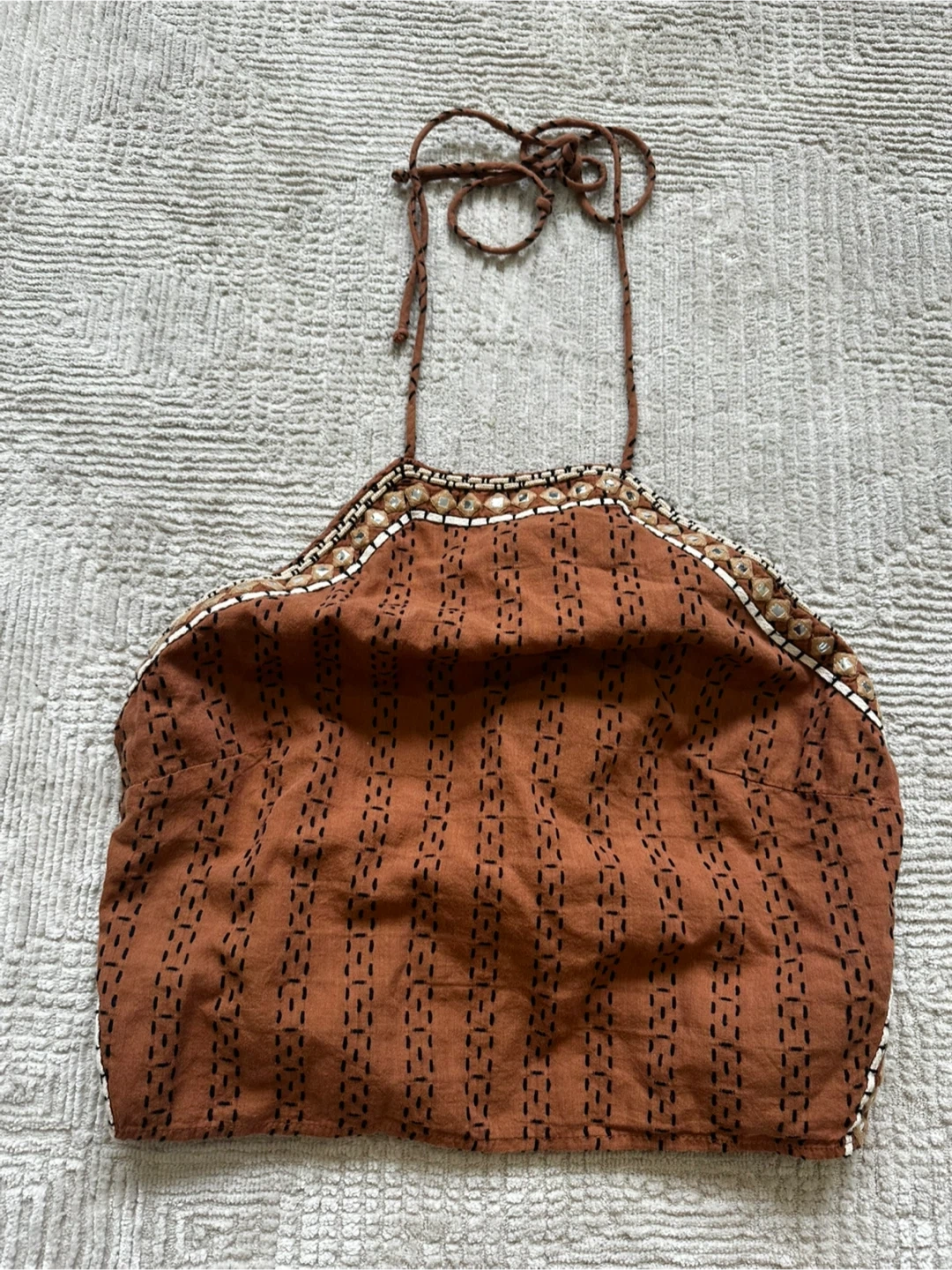 New Zara Women's Brown Embroidered Halter Top Size L