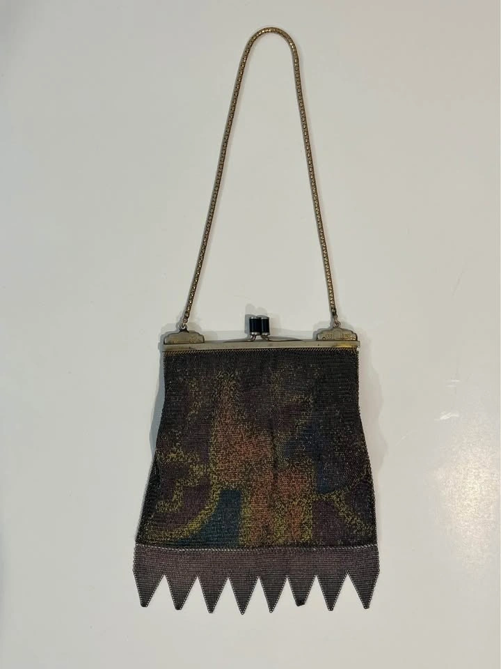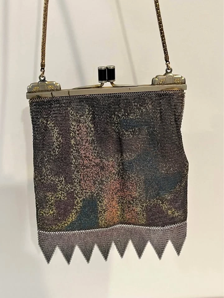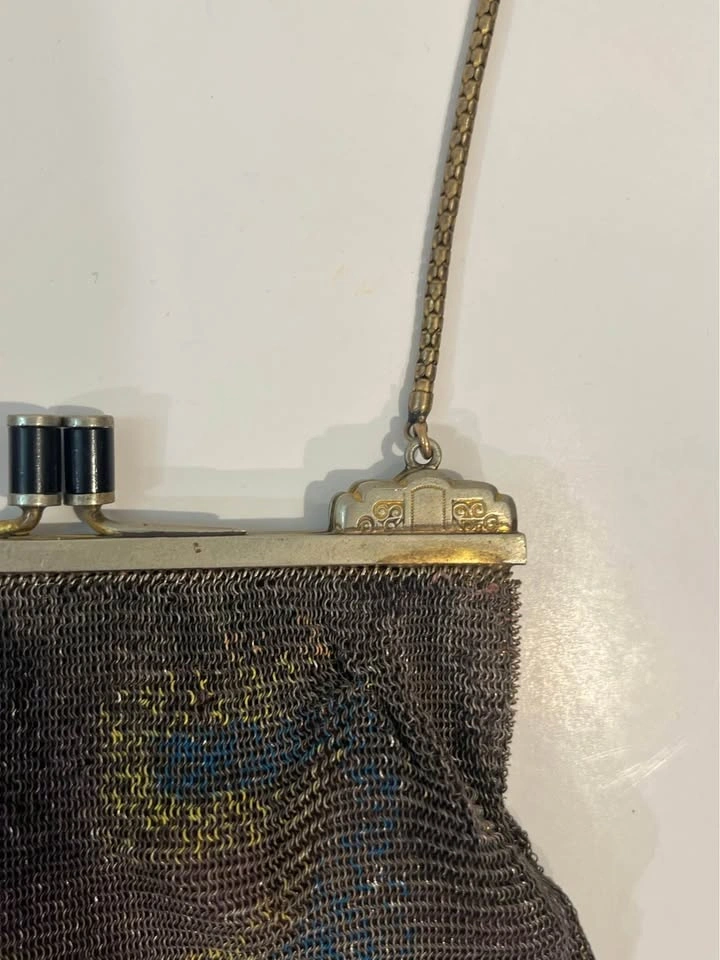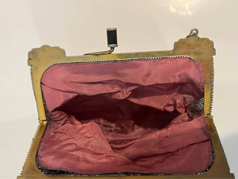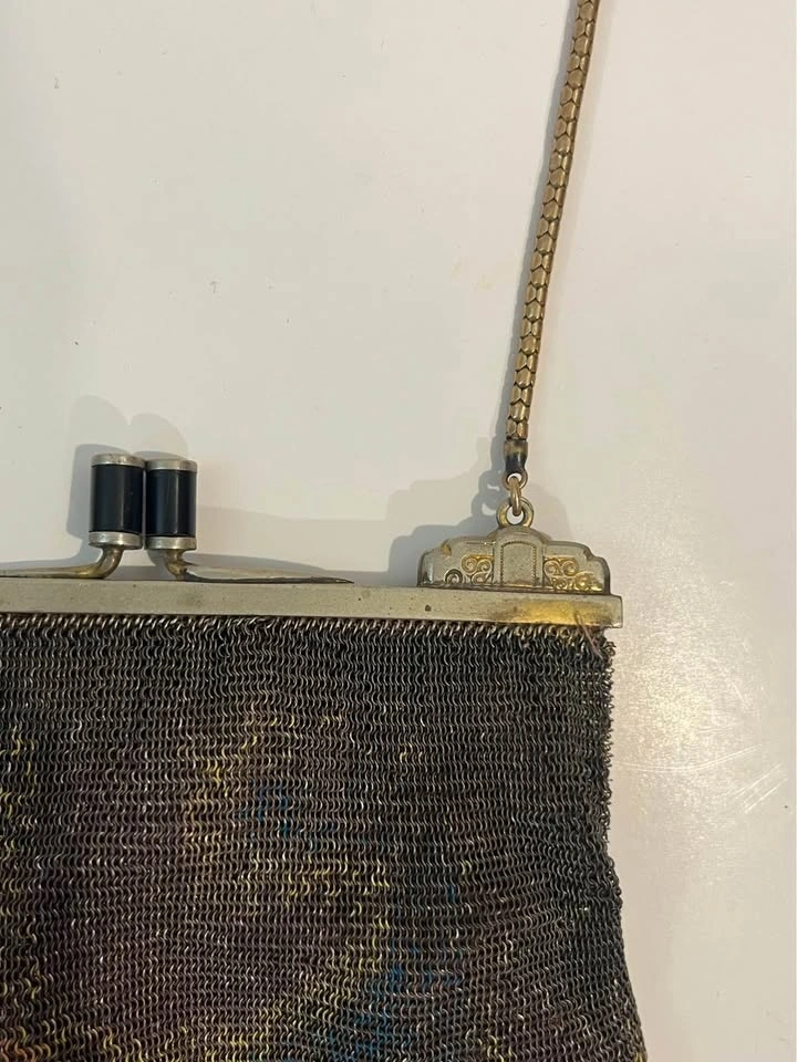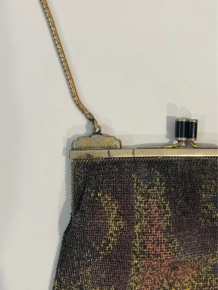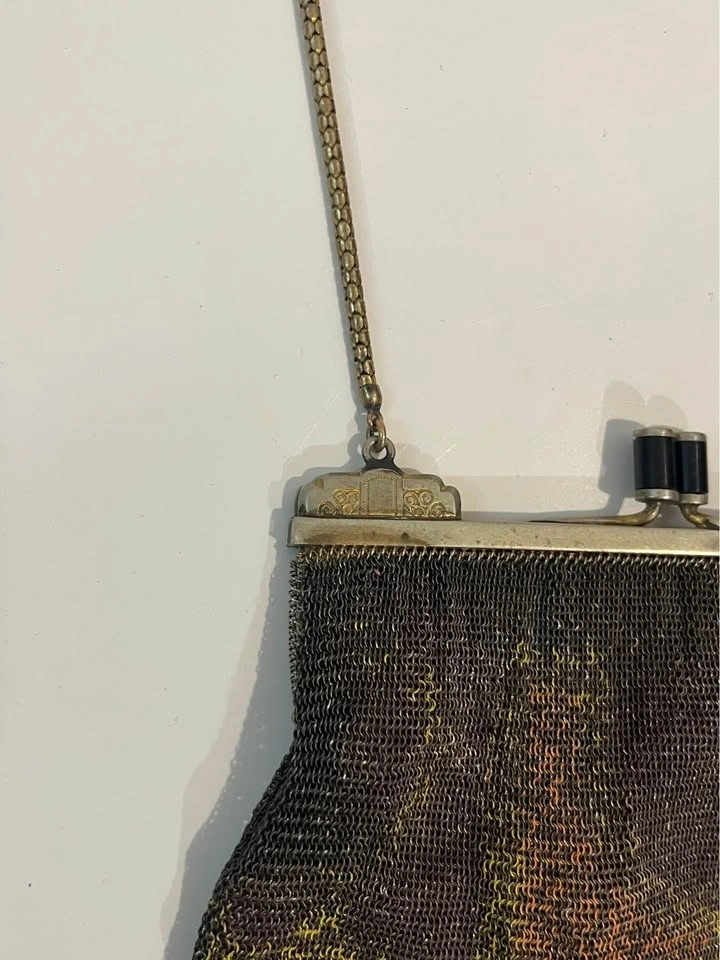 Antique Metal Mesh Flapper Purse Snap Clasp Clutch Painted Mesh