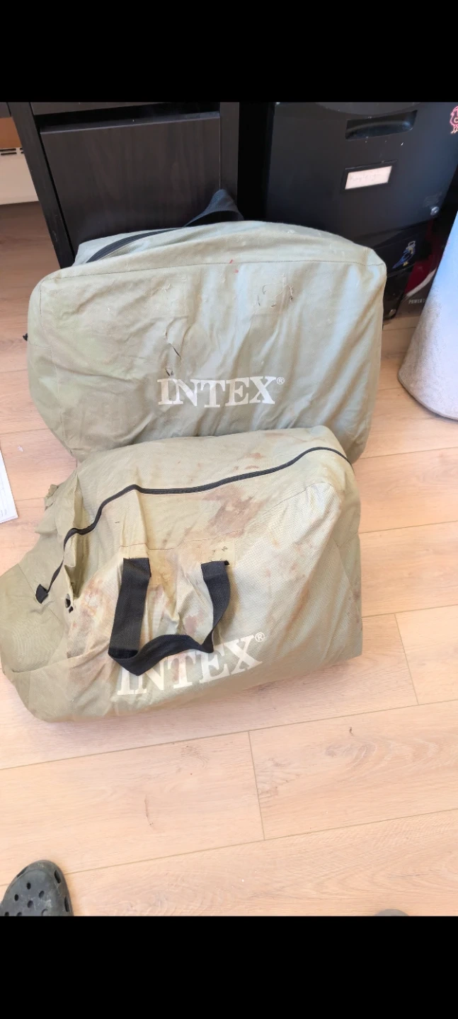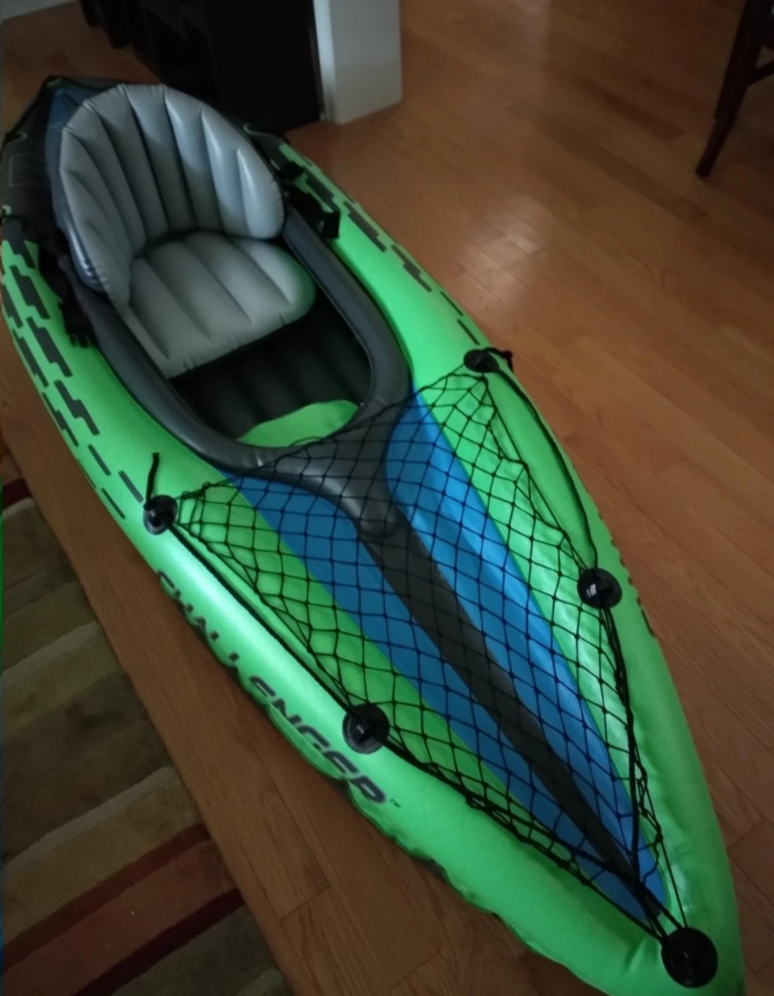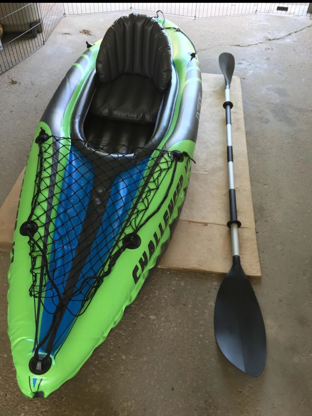 I have two Intex Challenger k1 kayaks they come with high performance output pump, a 86-in aluminum paddle and they are designed for comfort. They have space for with a removable skag for stability and a cargo net for extra storage. There is also grab lines on both ends for easy handling. Prices negotiable