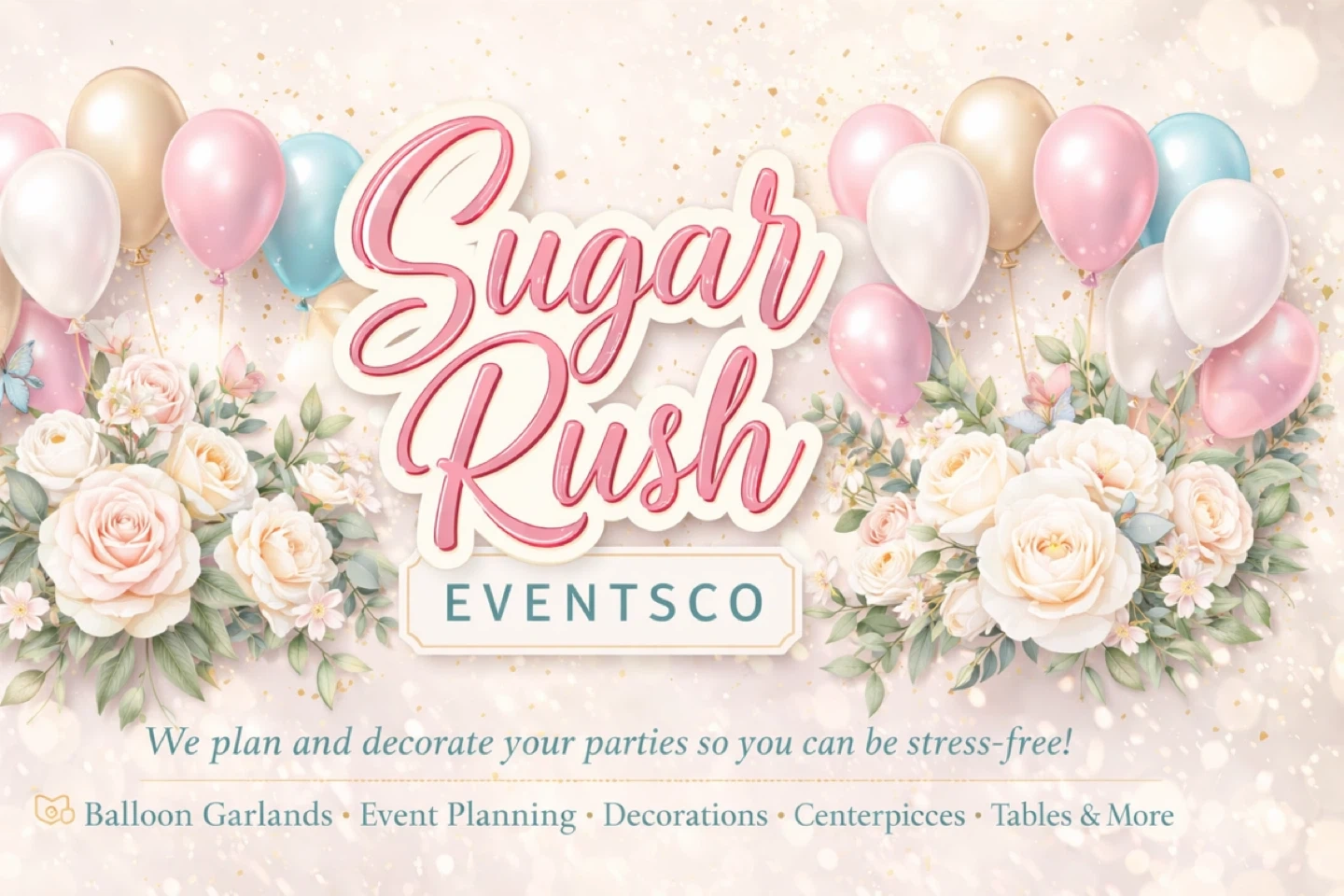Sugar Rush Events offers comprehensive event planning, balloon garlands, and custom decorations. We handle everything from table setups to themed decor to make your celebration stress-free! Let us decorate your event space with beautiful table setups, chair decor, and custom balloon installations.