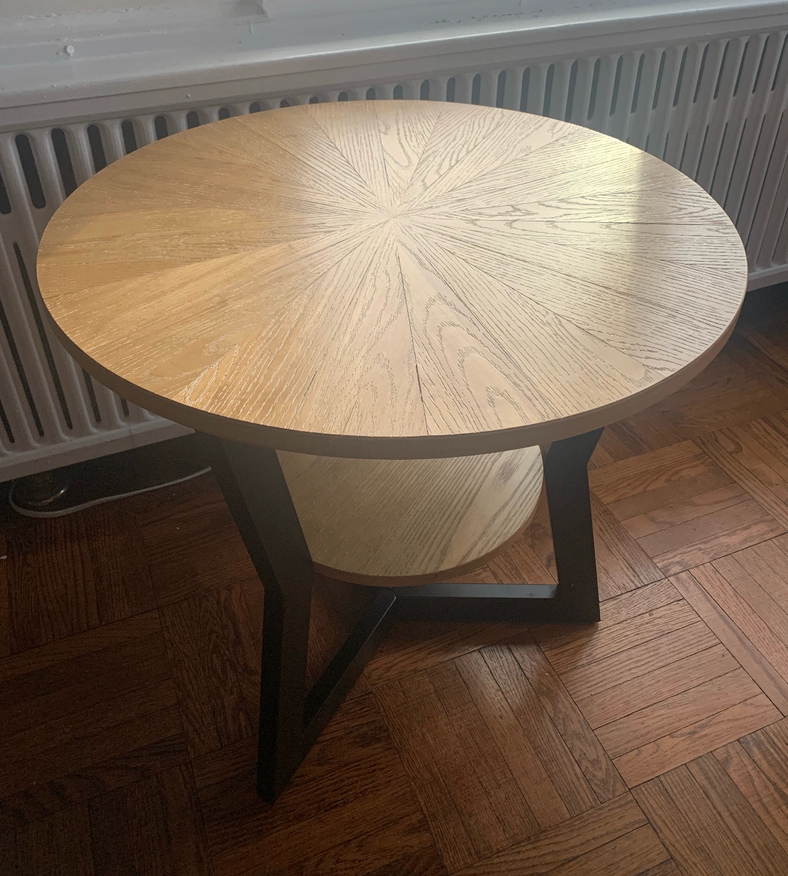 Pick up is at my apartment building next to Old Mill Subway in Etobicoke. Measurements: 25" height x 24" diameter. This is brand new and the wood is an Australian hardwood.