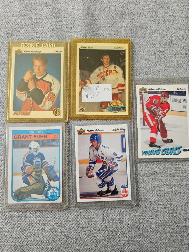 Selling 1980s-1990s hockey cards, all in great condition: Grant Fuhr ($45), Teemu Selanne ($15), Niklas Lidstrom ($15), Pavel Bure ($20), Peter Forsberg ($20). All 5 for $100. Condition: Used - Like new. More Info: Sports Collectibles. For Sale By: Owner.