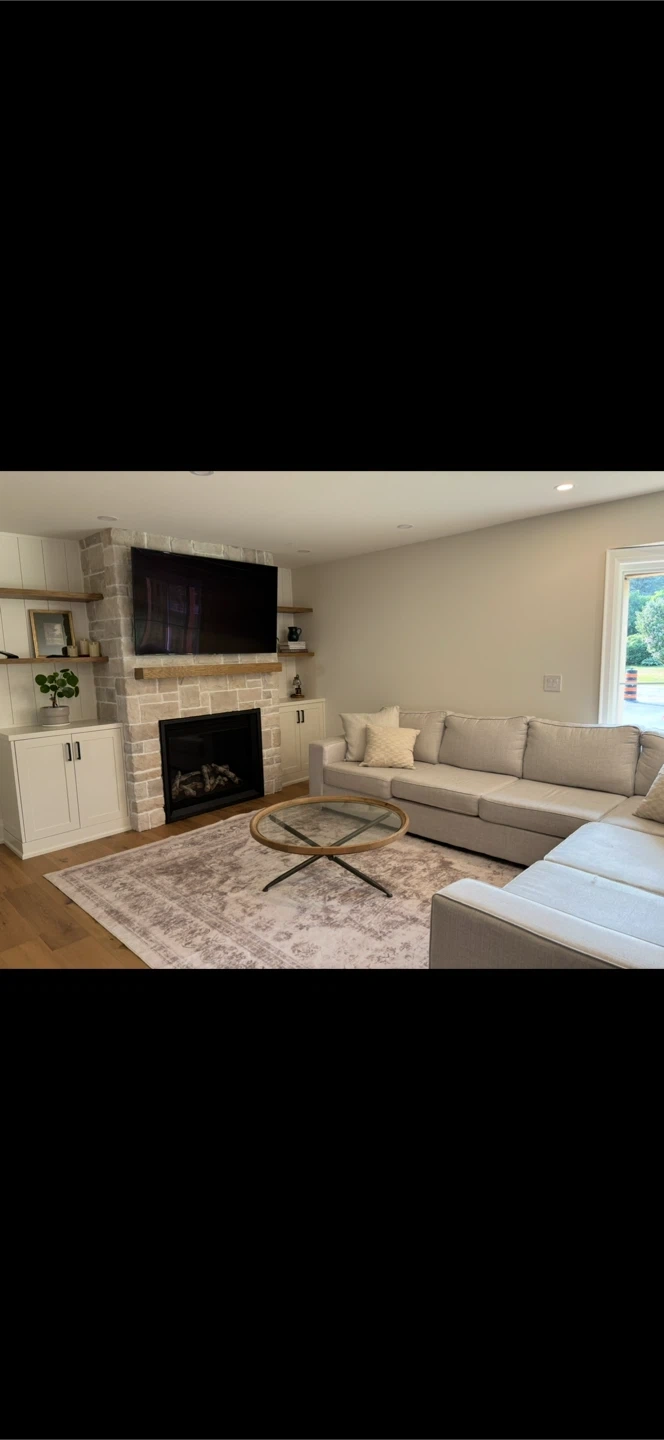 This area rug features a distressed pattern with neutral tones. It's soft and would complement many decor styles. Provides a cozy foundation for your living space. - no pet house hold