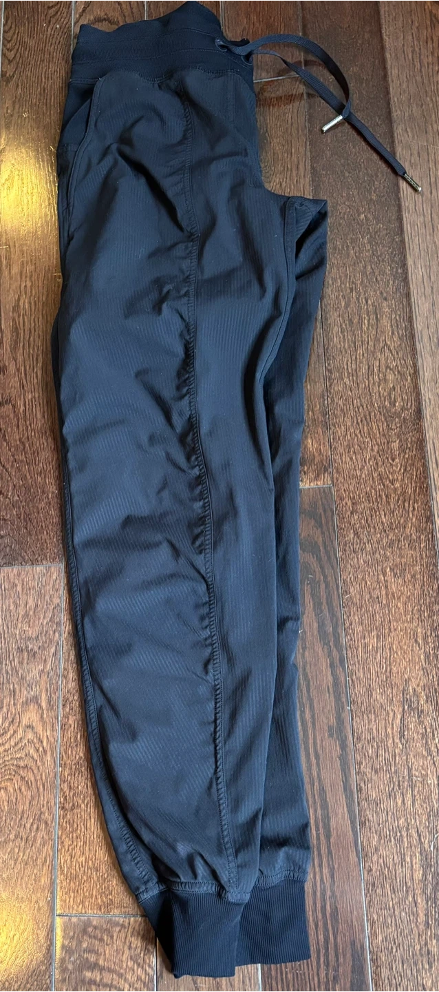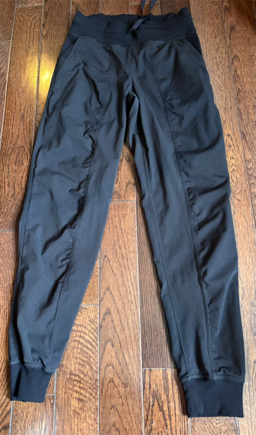 These Lululemon mid-rise Dance Studio joggers are size 4, 29” inseam, classic black colour. They feature