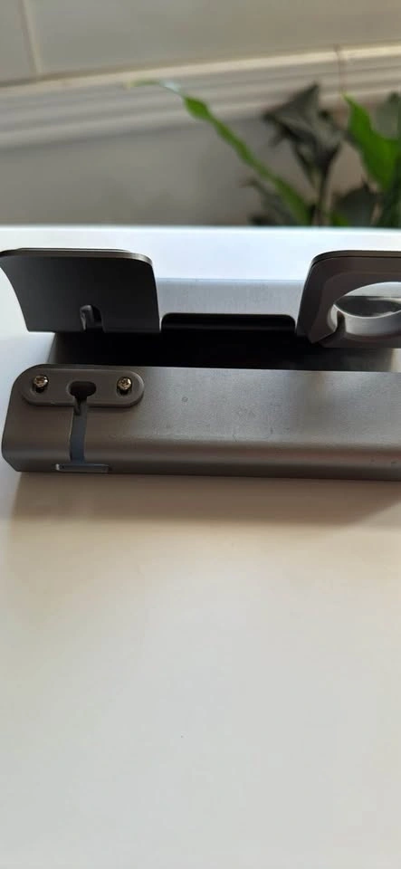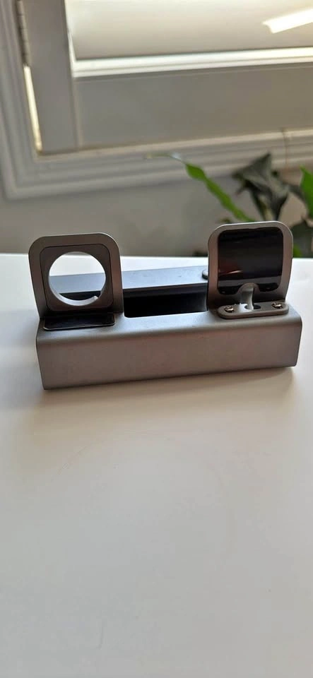 Streamline your nightstand or desk with this premium, heavy-duty charging dock. Designed to hold your iPhone and Apple Watch chargers in one solid, stylish unit to eliminate cable clutter.