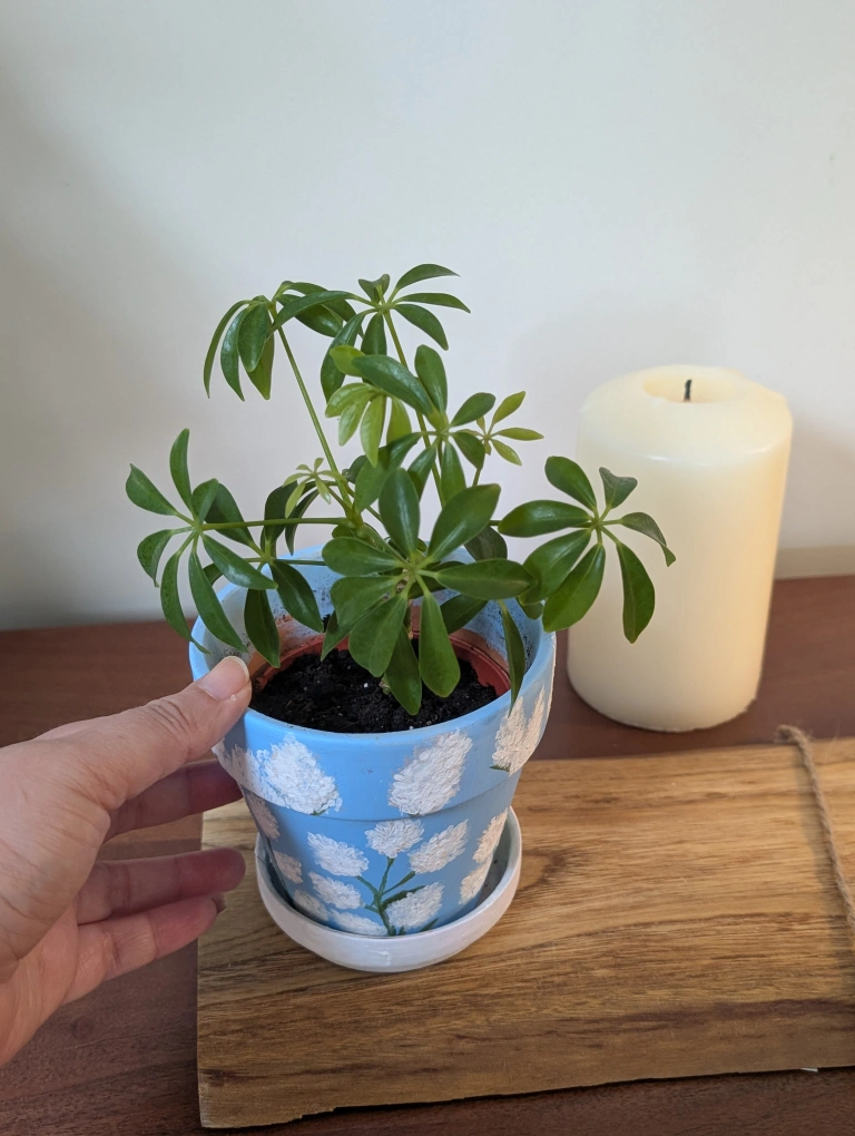 Umbrella plant (Schefflera) in Handpainted terra cotta pot