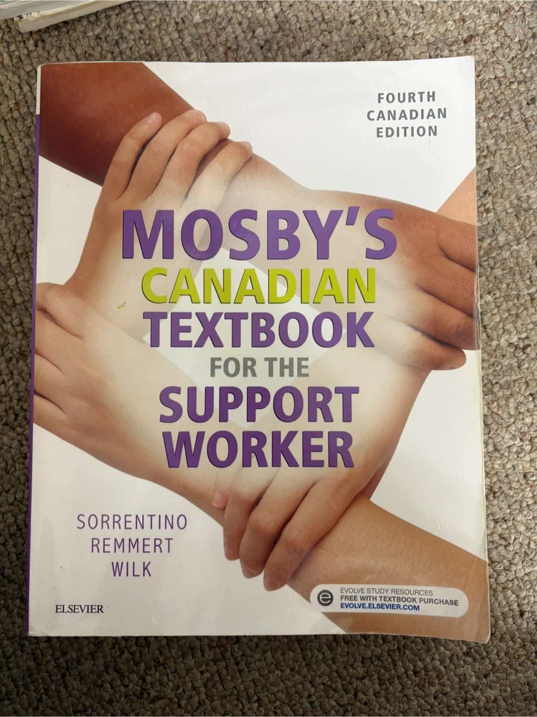 Mosby's Canadian Textbook for the Support Worker, Fourth Canadian Edition. Authors are Sorrentino, Remmert, and Wilk. This textbook is published by Elsevier and includes Evolve Study Resources. CIMT College