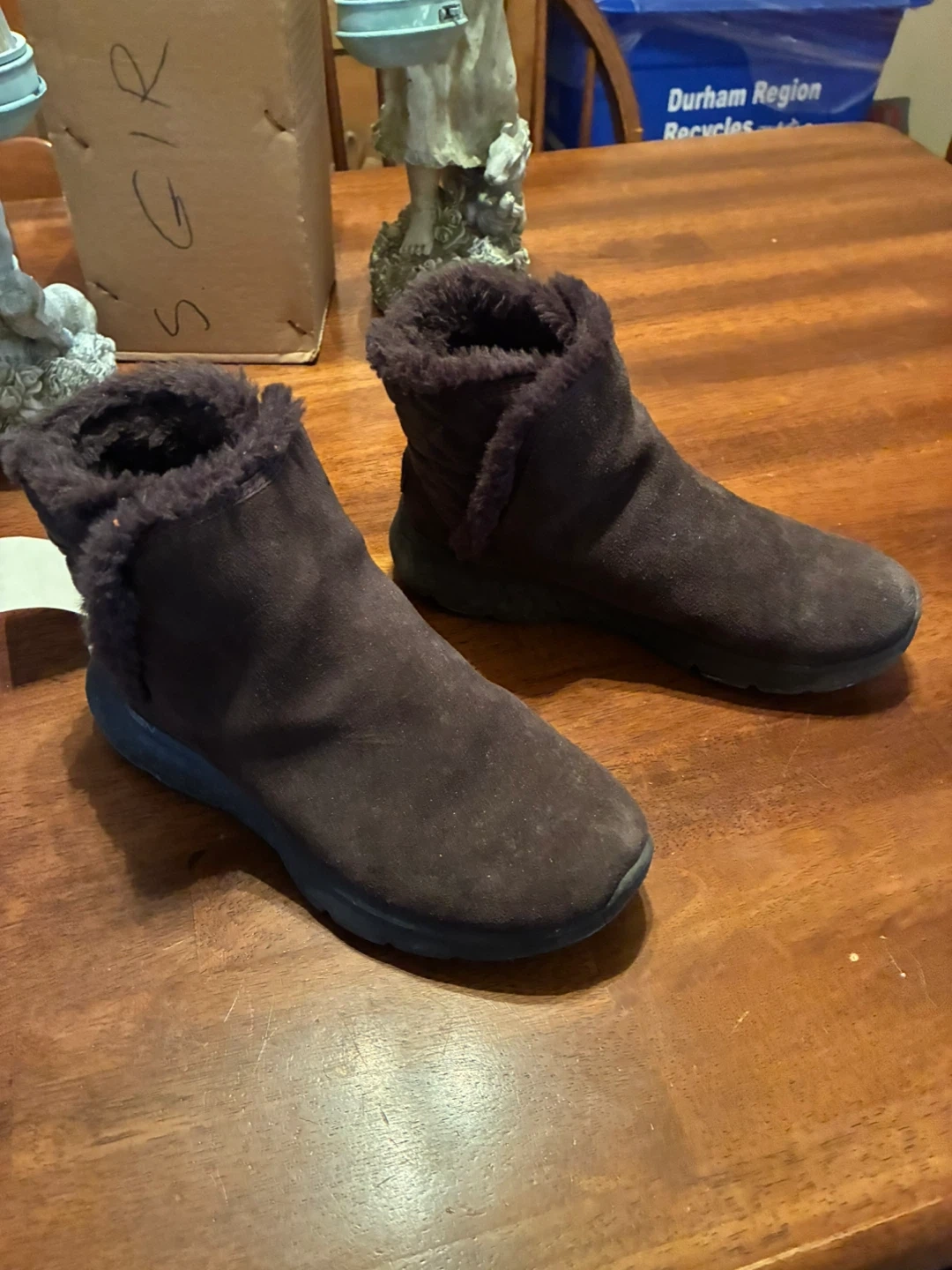 Cozy brown suede boots lined with soft faux fur. These ankle boots offer a comfortable fit and a stylish look. Perfect for keeping your feet warm during colder weather!