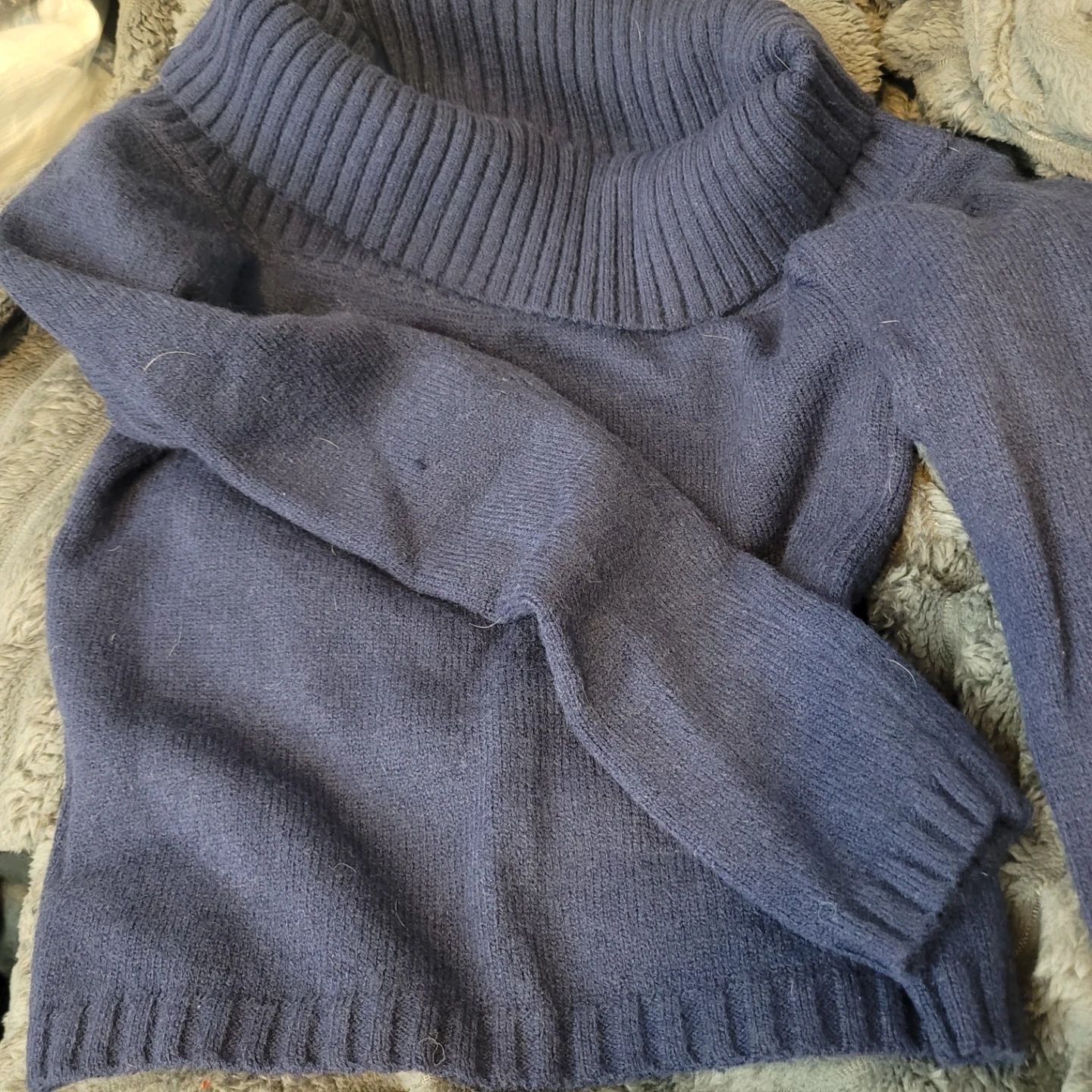 This Edikted pullover sweater is a size small. It's a dark navy colour. Small snags noted on the fabric.