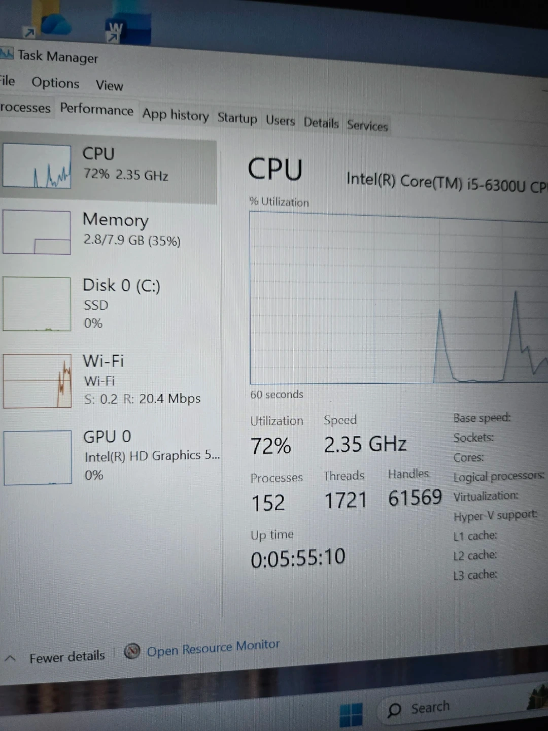 Intel core i5-6300u cpu @ 2.5ghz speed fast operation