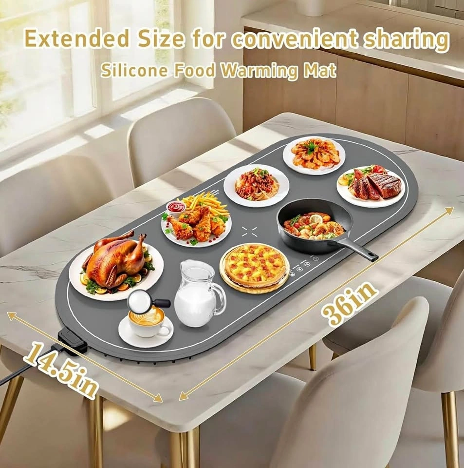 This is an extra large, 36x16 inch XXL food warming mat. It's a roll-up silicone heating pad, great for keeping food warm for buffets or parties. Feel free to message if you have any questions!
