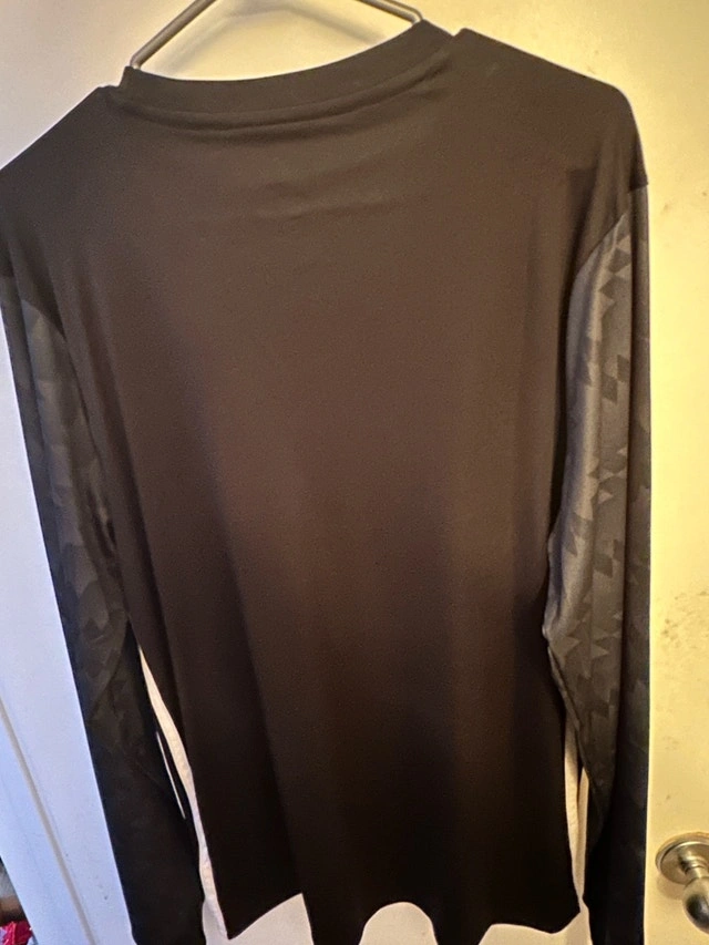 Manchester United away black long sleeve soccer jersey. Perfect condition. Size men's large. Asking $60. Price is firm. From a bug free, smoke free, pet free home. Cash only. Pick up only in the South Pembina, Fort Richmond Area.