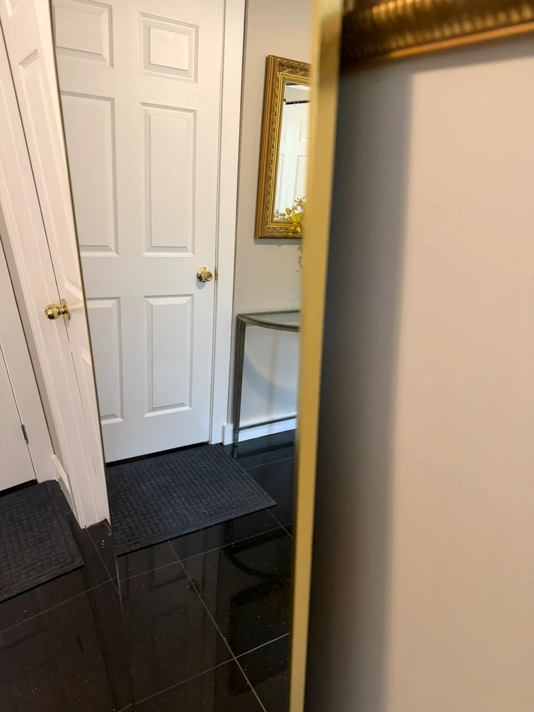 Brand new gold 71 inch x 26 inch floor mirror for sale. It has a kick stand in the back to help it lean and can be hung up on a wall as well; it comes with screws that are included: The trim is golden. Great for living rooms, bedrooms, and entryways. Message me if you are interested.
