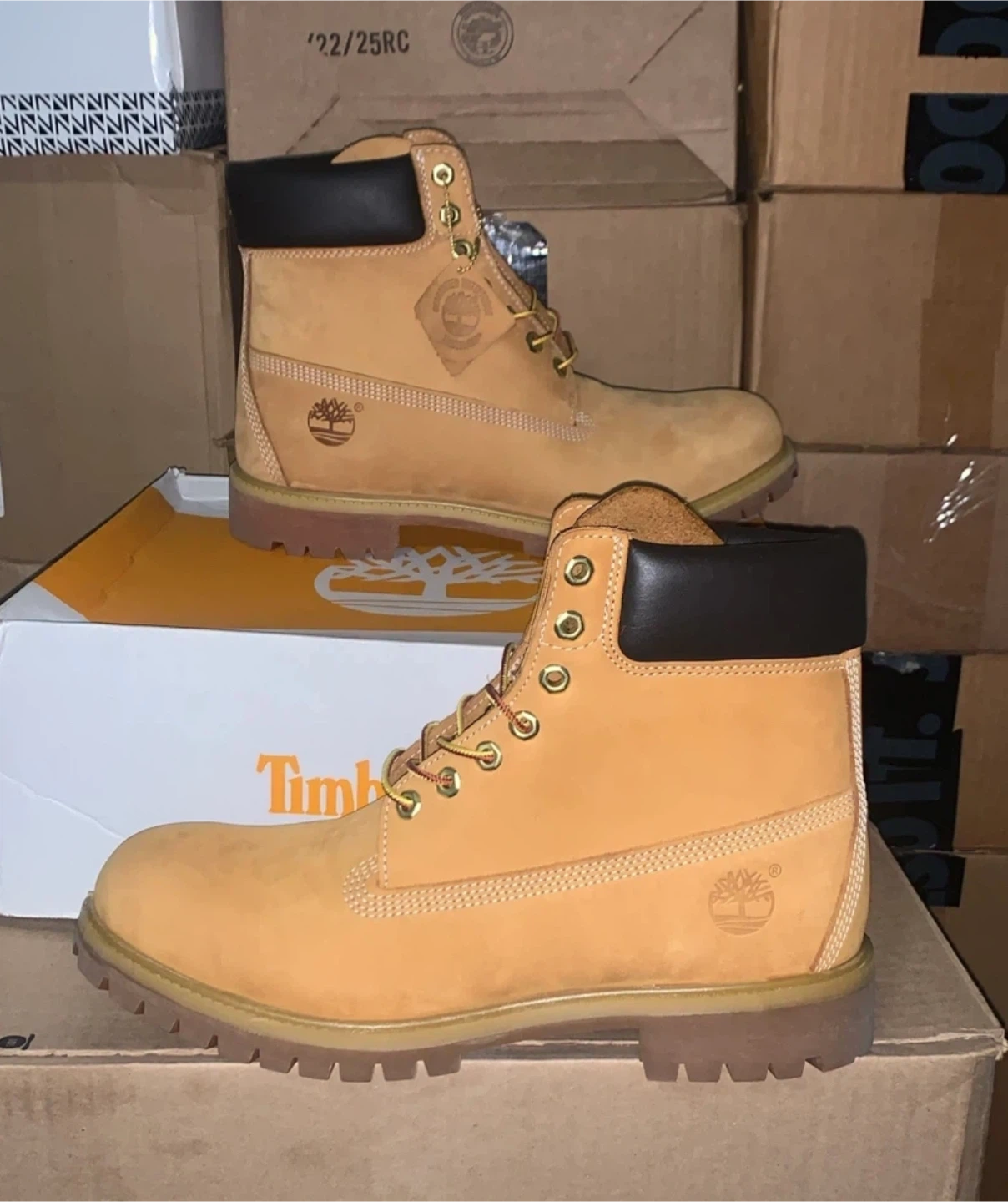 Timberland 6 inch premium waterproof boots in wheat nubuck. Men's size 11. Includes original box.