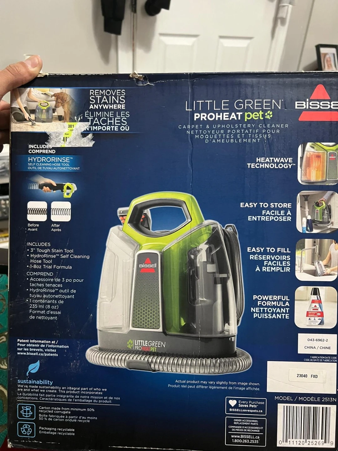 This Bissell Little Green ProHeat Pet carpet and upholstery cleaner is designed for tough stains. It includes a 3" Tough Stain Tool, HydroRinse self-cleaning hose, and a 8oz formula bottle. It's great for pet owners who need to tackle accidents and messes. This unit features heatwave technology to help maintain water temperature throughout the cleaning process.