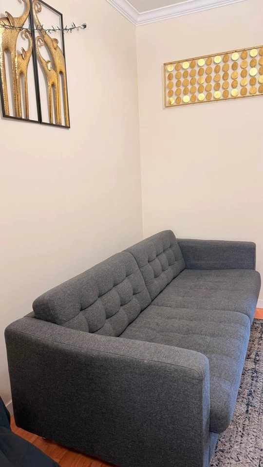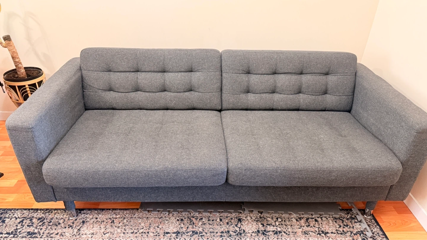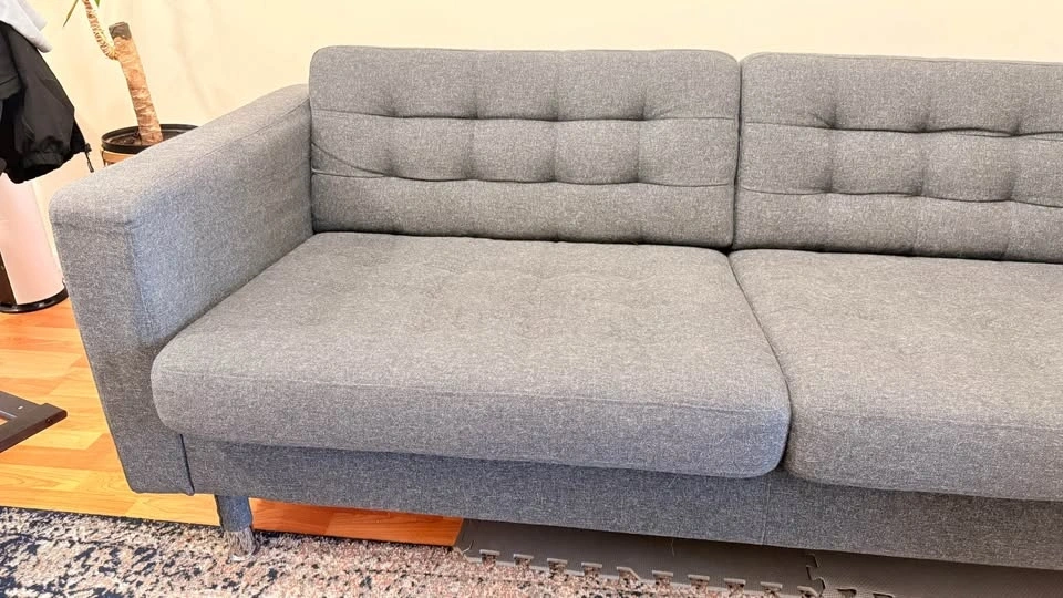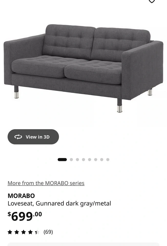 Comfortable seat cushions filled with high-resilience foam and polyester fibre wadding. The chrome-plated steel legs give this MORABO loveseat a modern and glossy look. Armrests are removable, making it easy to add on a chaise lounge. The cover is made of durable, dope-dyed Gunnared fabric with a wool-like feel and a two-toned melange effect. Designer: IKEA of Sweden.