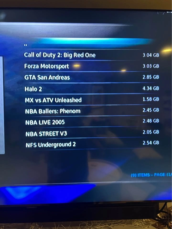 - 12 Games (GTA San Andreas, Tony Hawk's American Wasteland, Soul Caliber 2, Unreal Championship 2, NFS Underground 2, NBA Street V3, NBA Live 2005, NBA Ballers: Phenom, MK vs ATV Unleashed, Halo 2, Forza Motorsports, COD 2: The Big Red One).