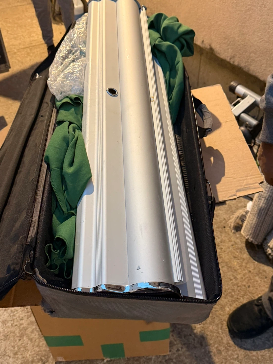 Selling a retractable banner stand that comes with its own carrying case. It's in good condition and ready for your next event or presentation. Easy to set up and take down!