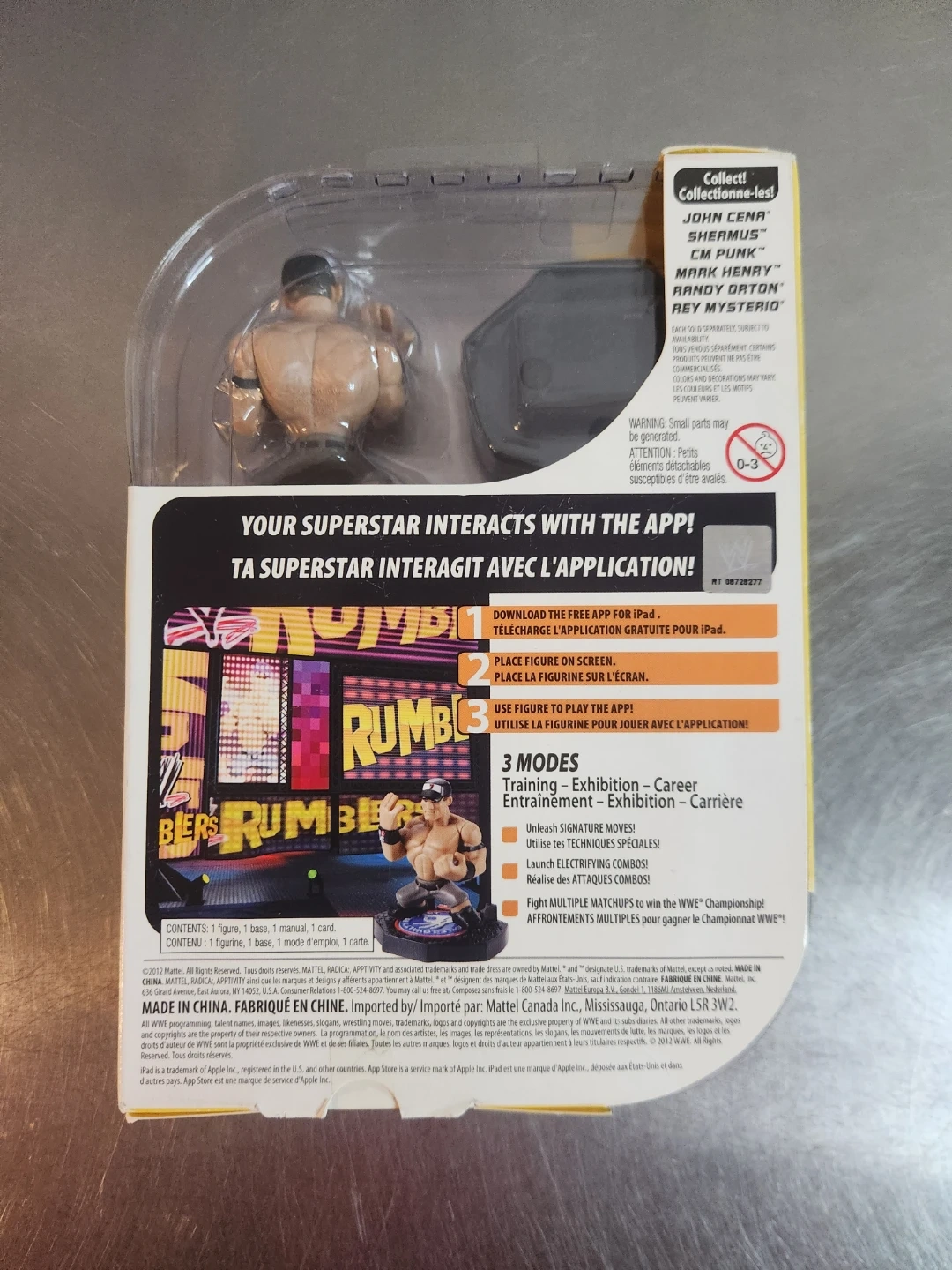 Selling a John Cena WWE Rumblers Apptivity figure. This figure is compatible with the iPad app for interactive gameplay. It includes one figure, one base, and one card. Great for WWE fans!
