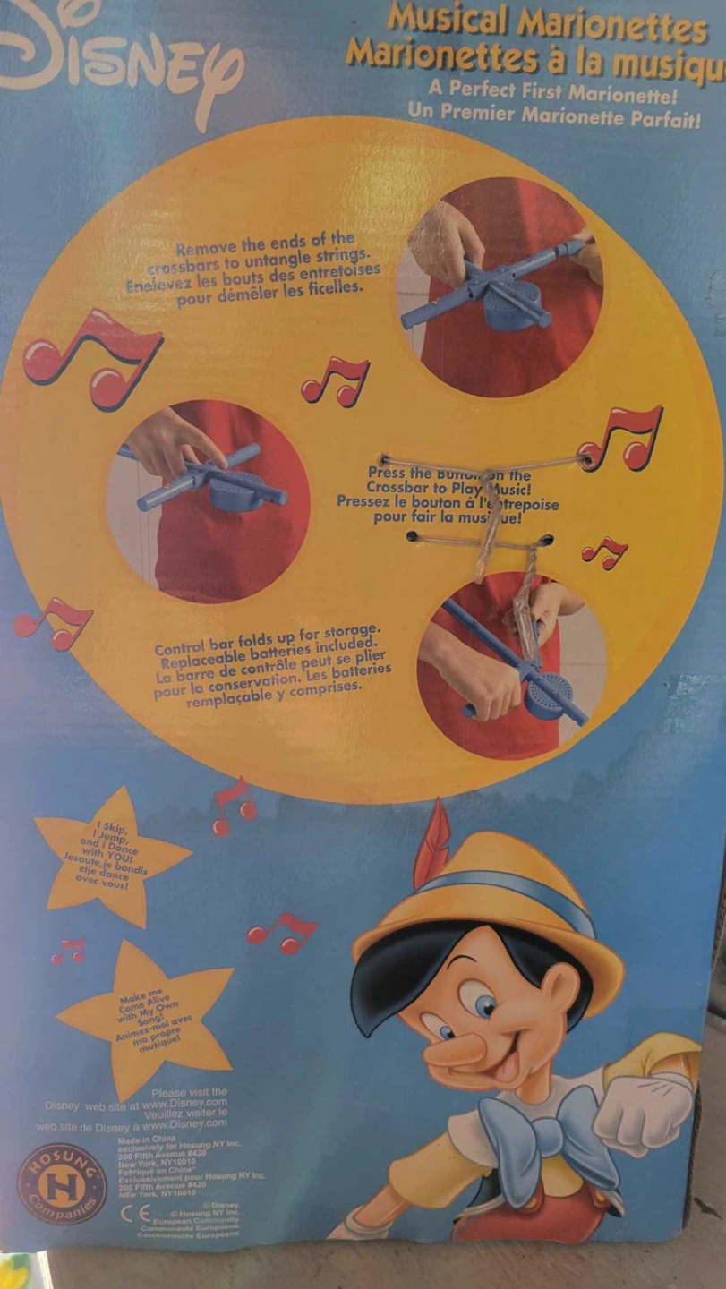 Brand new DISNEY PINOCCHIO MUSICAL MARIONETTE DOLL BY HOSUNG NIB (box has some wear on it) , never played with.