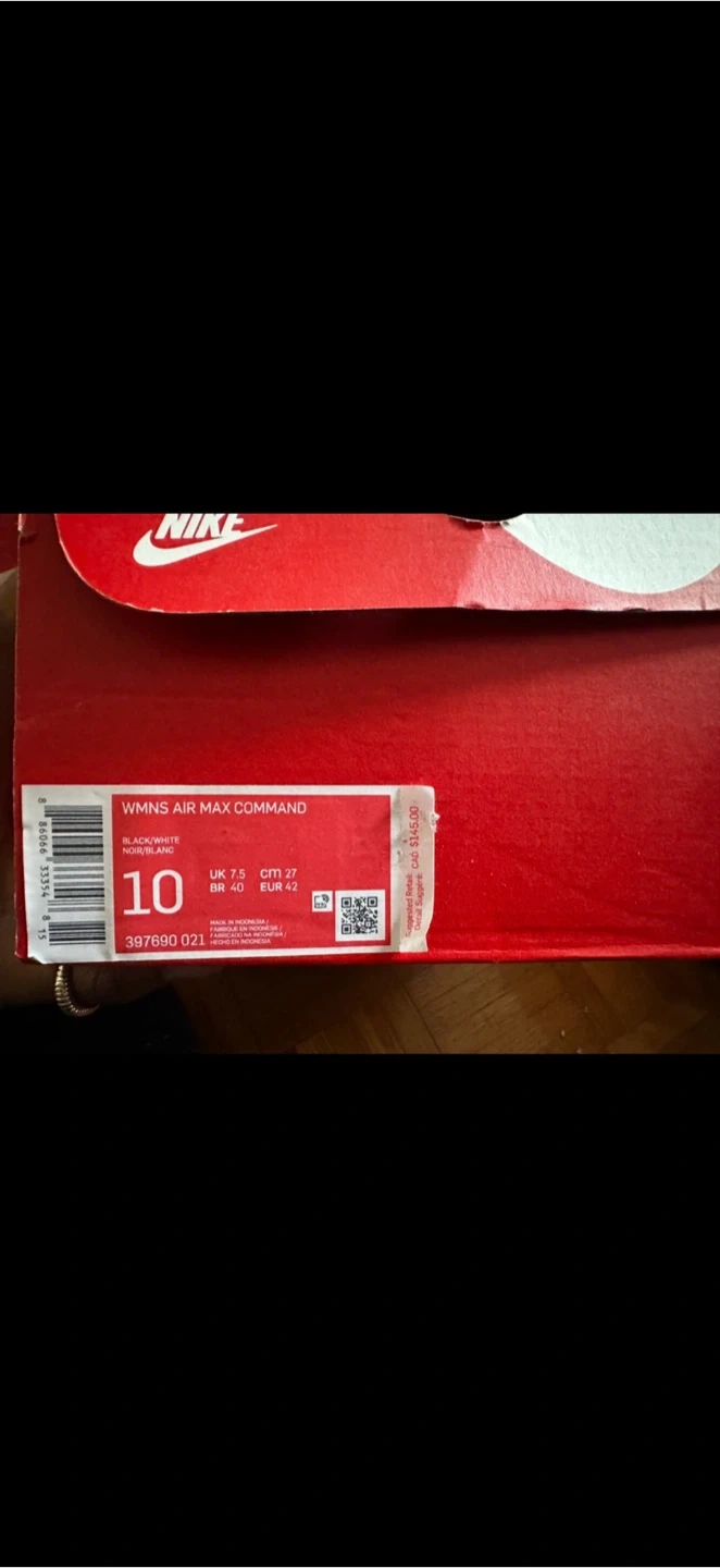 These Nike Women's Air Max Command shoes are a size 10 in a pink, black, and white colourway. They come with the original box. Classic Air Max cushioning for all-day comfort.