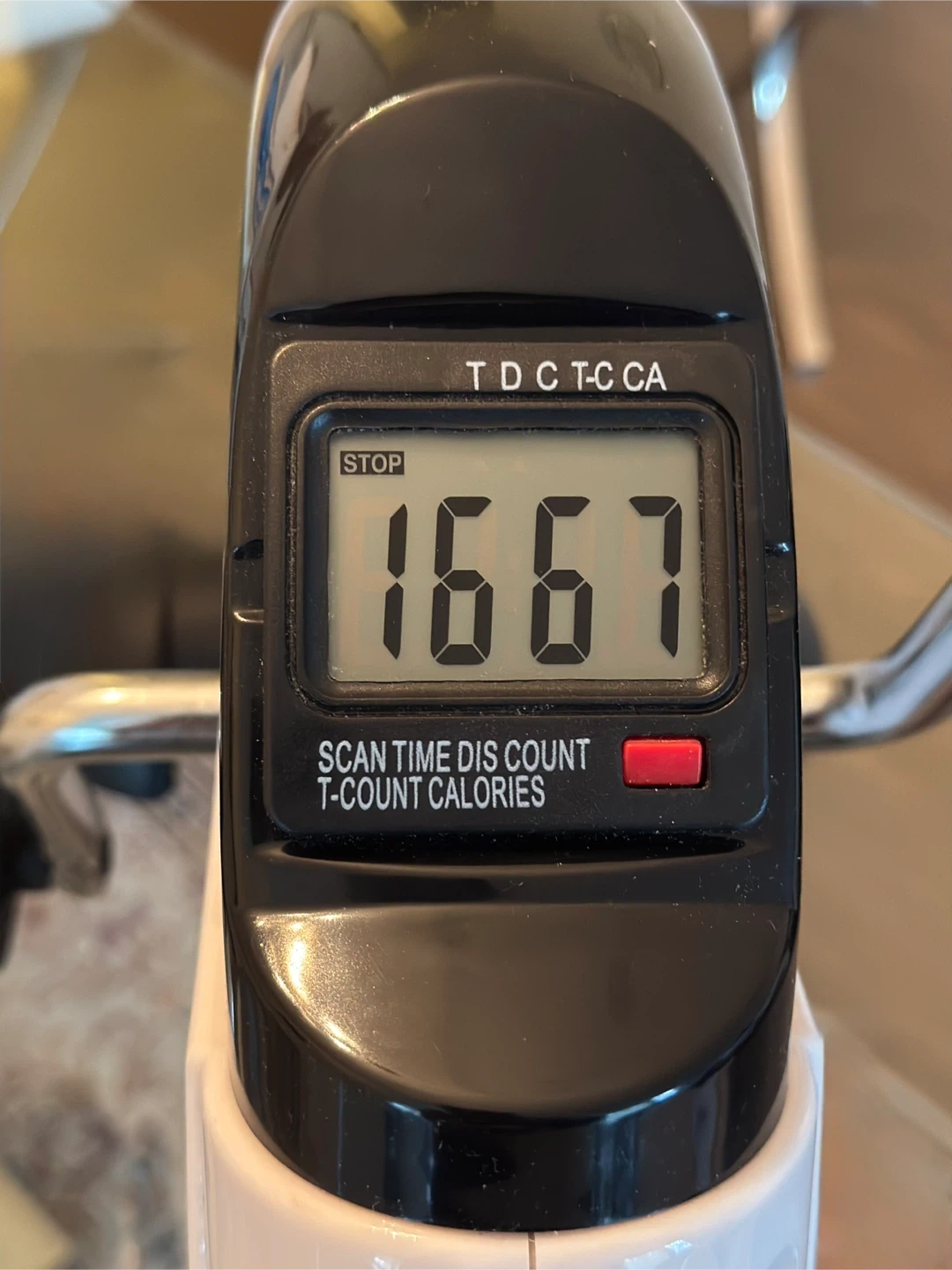 Selling a TODO mini exercise bike pedal exerciser in great condition! It's perfect for leg and arm recovery, and features an LCD monitor to track your progress. The bike is white and black, and it's lightweight and portable. The dimensions are 15" x 13.5" x 12.5".