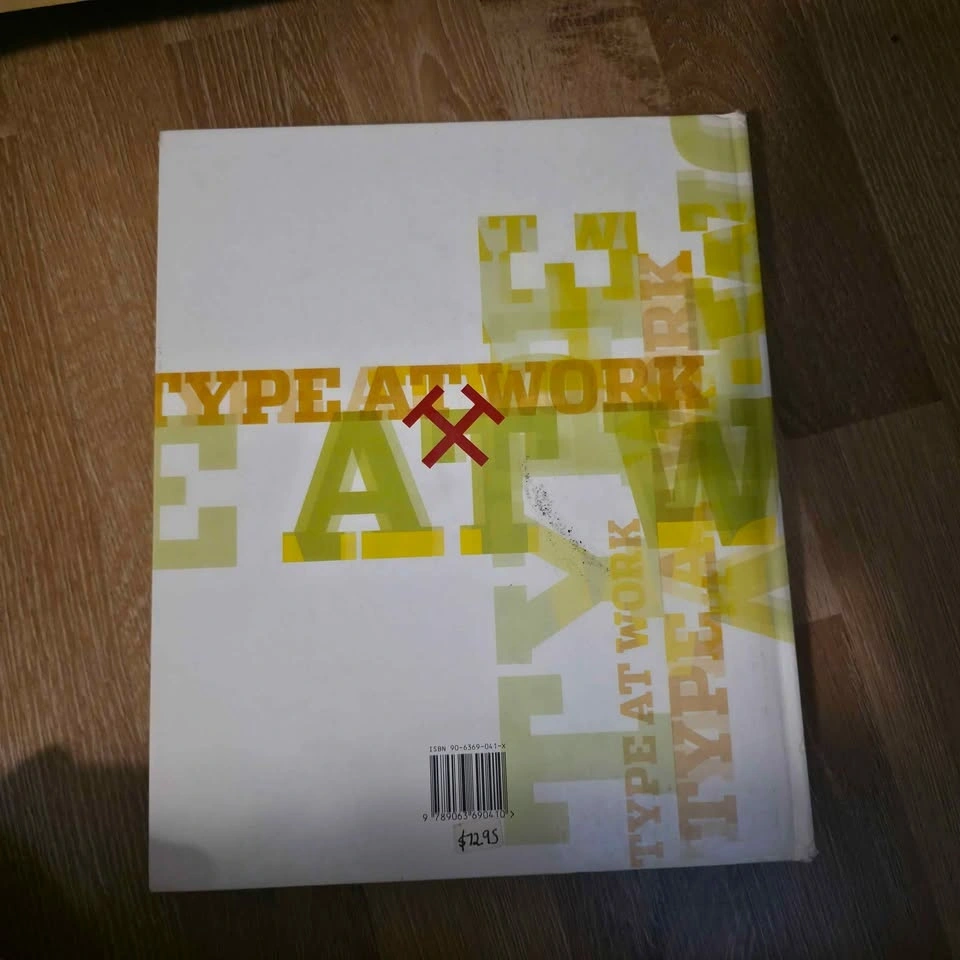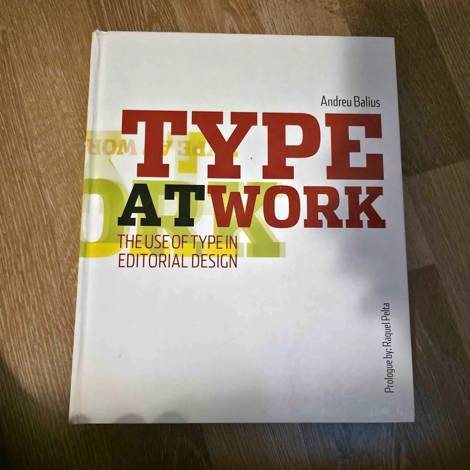 The book 'TYPE AT WORK' by Andreu Balius is an informative resource that explores the application of type in editorial design. It is particularly suitable for individuals with an interest in graphic design or typography. The inside pages are clean.