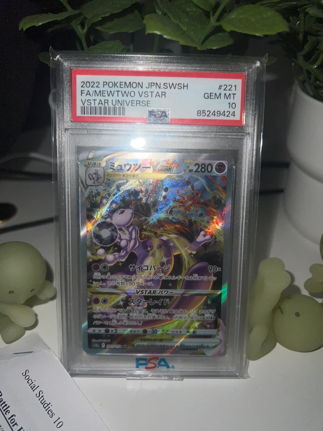This is a 2022 Pokemon Japanese SWSH FA Mewtwo VSTAR card. It's graded GEM MT 10 by PSA with serial number 85249424. It's from the VSTAR Universe set.