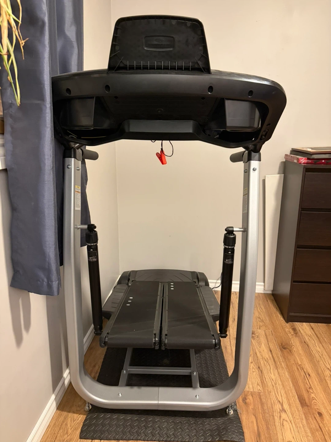 Bowflex TreadClimber TC100 fitness machine. It combines a treadmill and elliptical. Features include adjustable speed and incline.