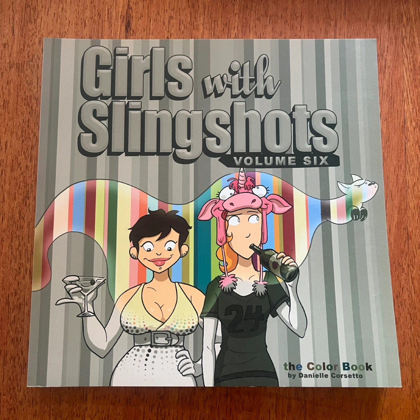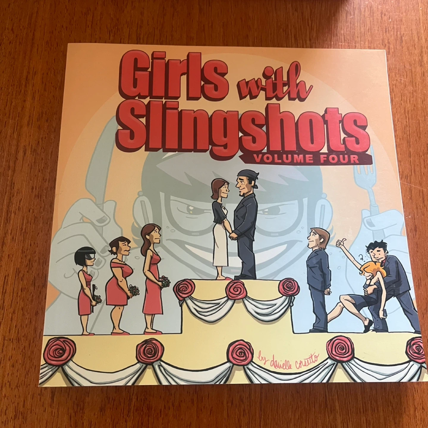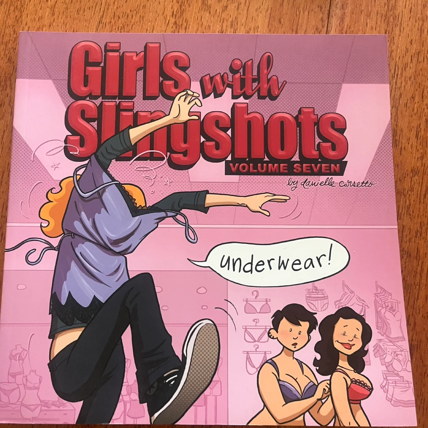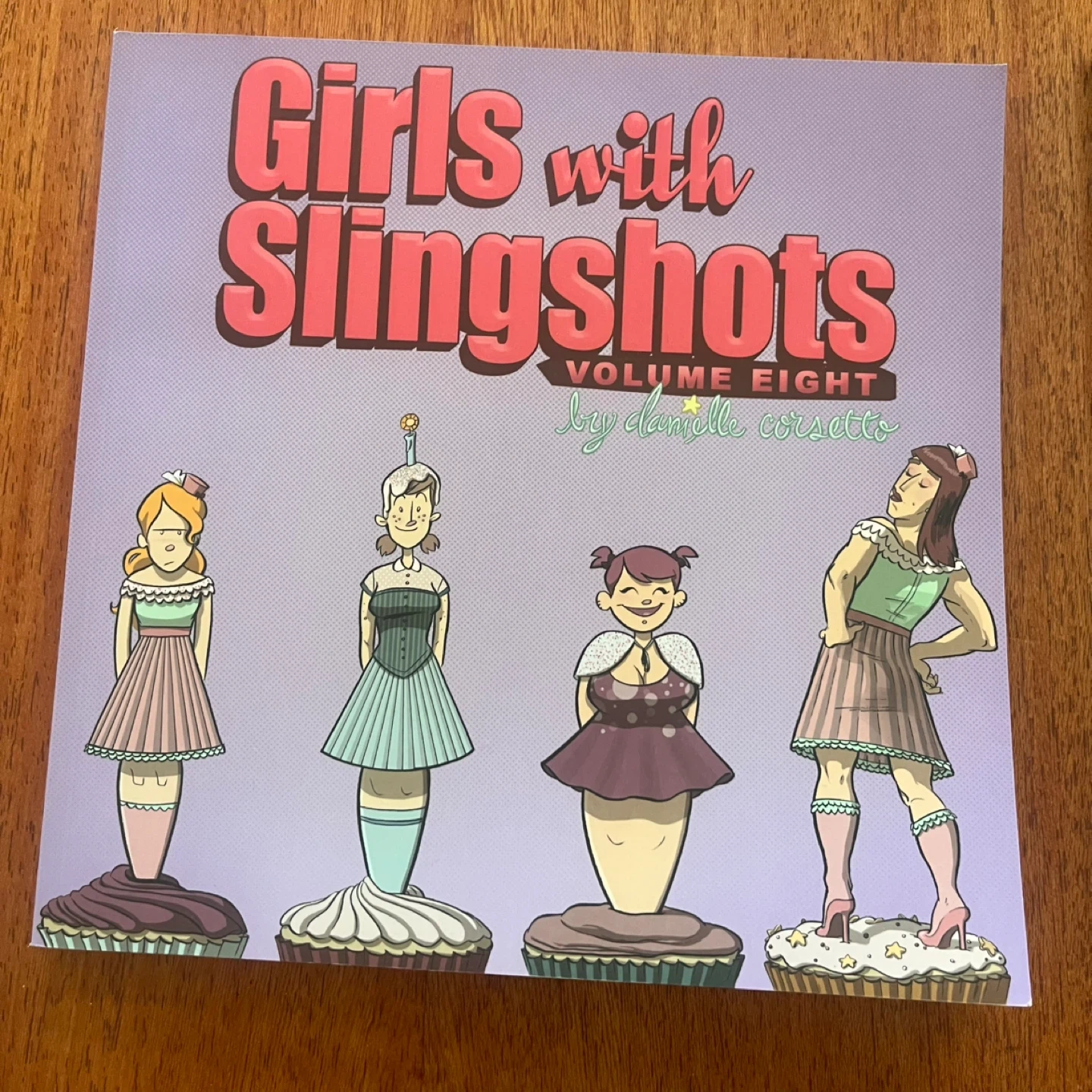 I'm offering a set of 'Girls With Slingshots' comic books, volumes 1, 3, 4, 6, 7 and 8 by Danielle Corsetto. These are used copies in good condition. Volumes 1 and 3 are inscribed, signed and include a personalized drawing inside.