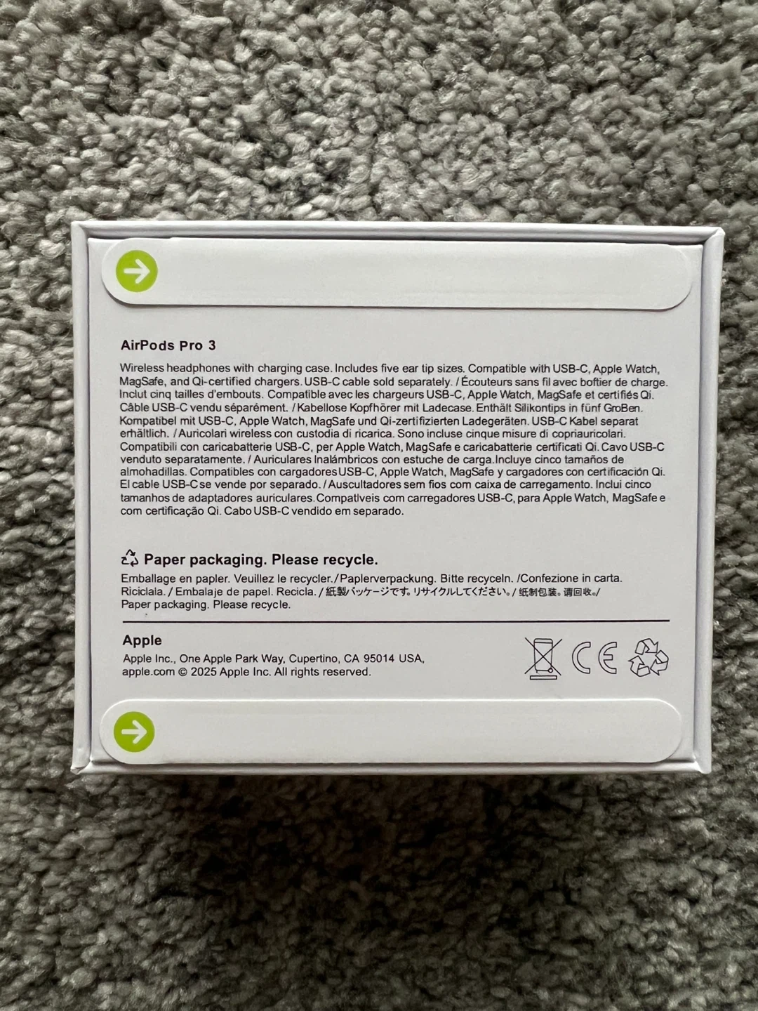 Apple AirPods Pro with charging case. Wireless earbuds compatible with USB-C devices. Includes five ear tip sizes for a custom fit. Paper packaging, please recycle. Manufactured by Apple Inc.NO TRADES