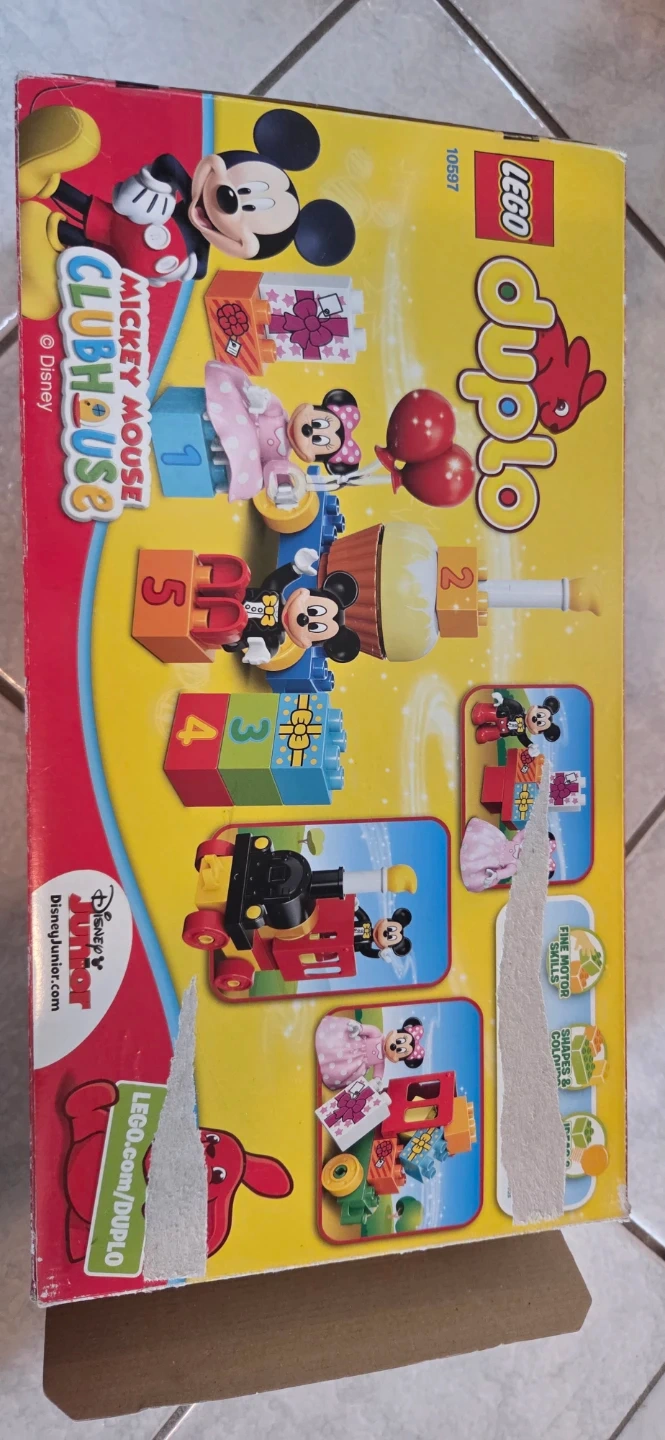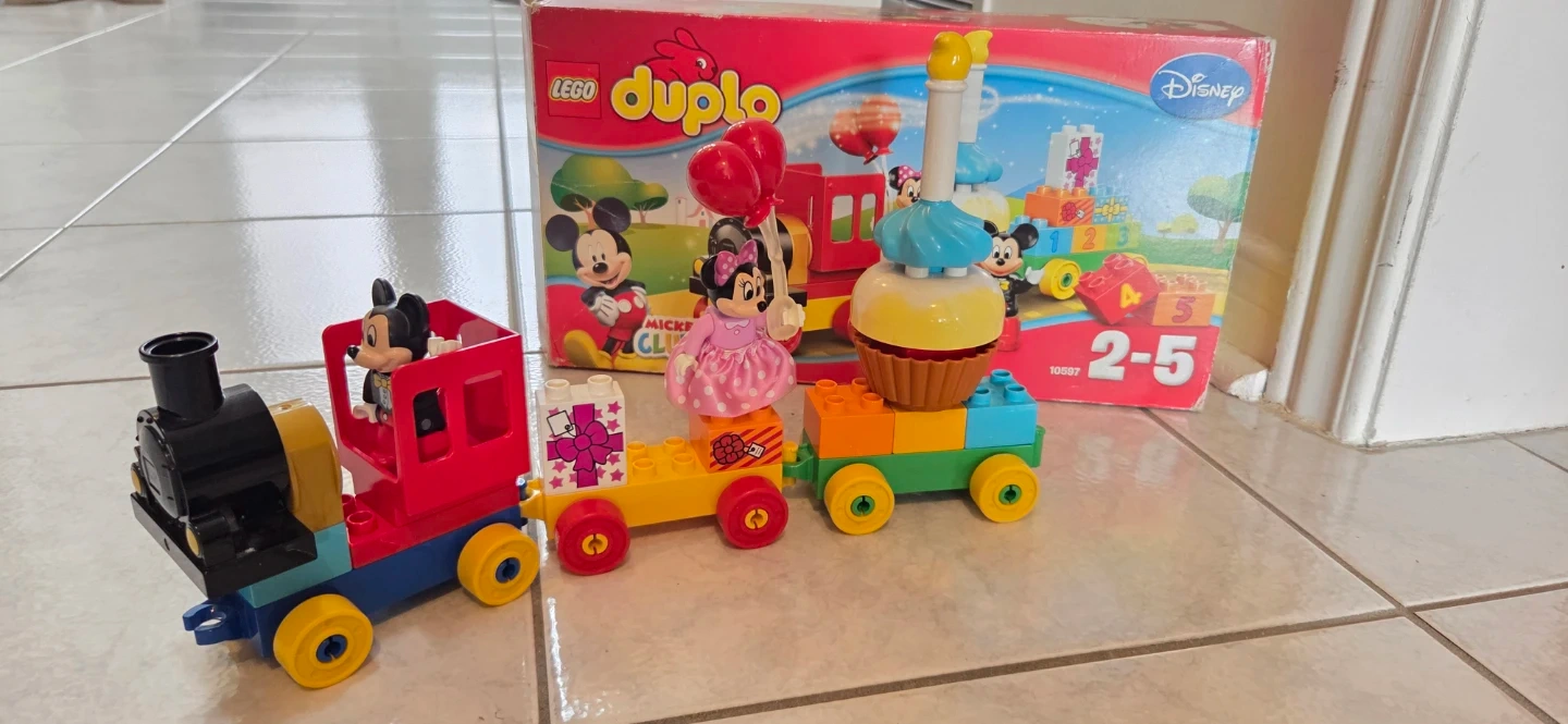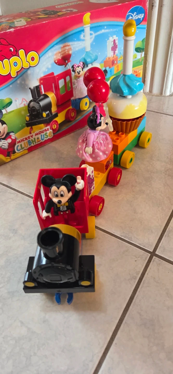 This is a LEGO Duplo set featuring Mickey Mouse and Minnie Mouse. It includes a buildable train with wagons and characters. Recommended for ages 2-5.
