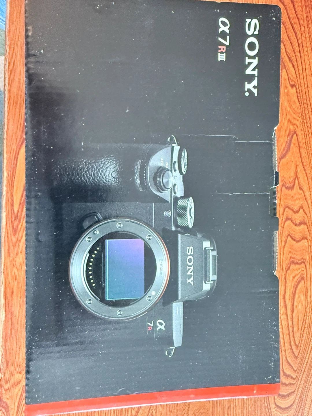 Sony Alpha a7R III interchangeable lens digital camera. It's a full-frame camera with an E-mount. Includes camera body and cap and two π Sony batteries. It's black. Original box included and 2 128 GB Sd cards 300MB/s LEXAR