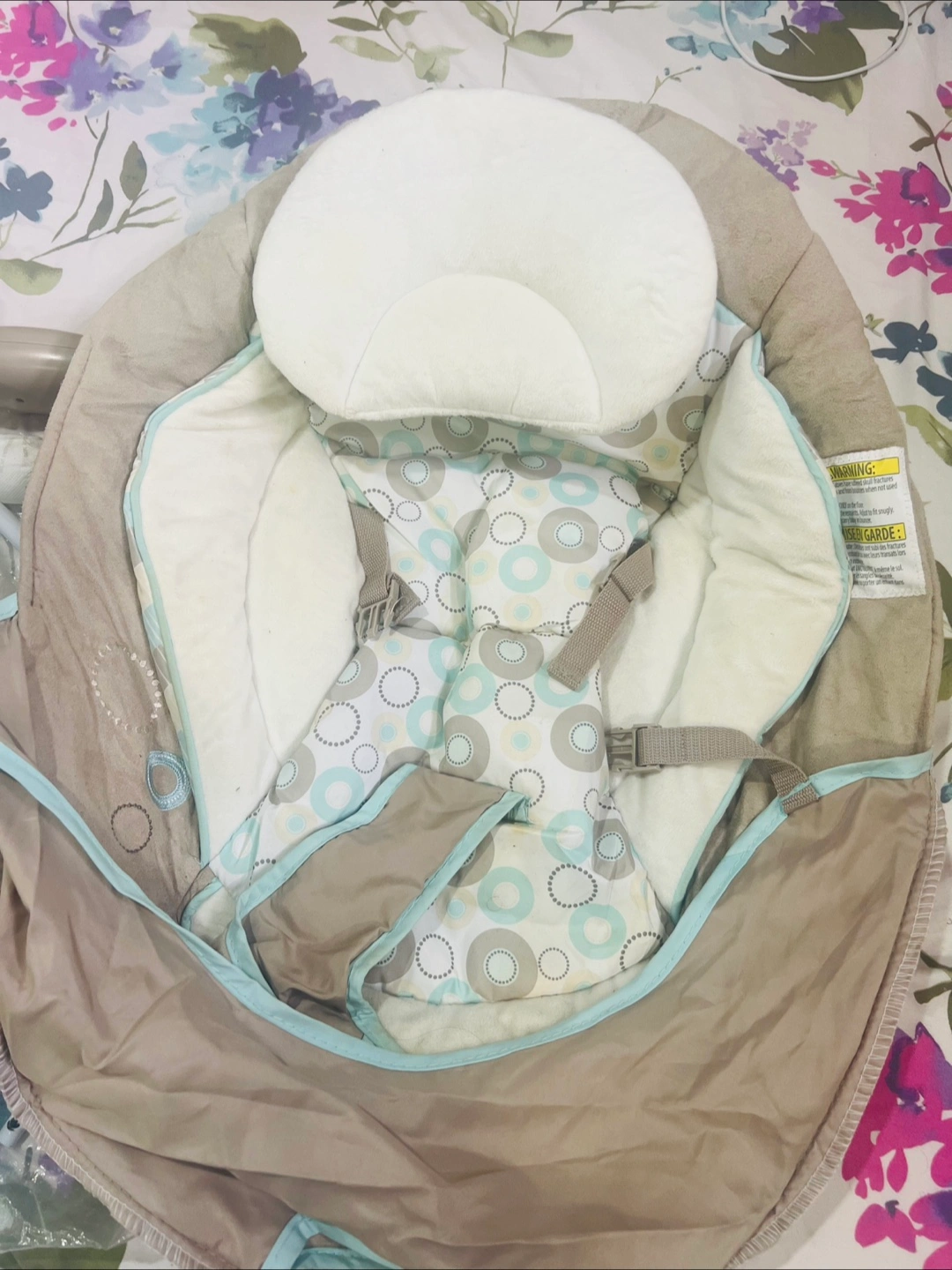 Selling a baby bouncer from Bright Starts! It's in great condition and ready for a new little one. It comes with all its components, ensuring a complete and enjoyable experience for your baby. This bouncer is designed to keep your baby comfortable and entertained!