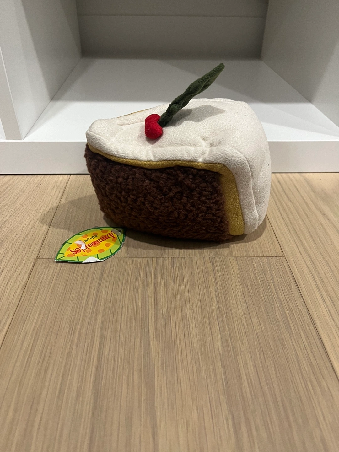 retired jellycat. Cute and cuddly plush toy shaped like a slice of Christmas cake. Soft and fluffy material. Perfect gift or stocking stuffer. Brand new with tag.
